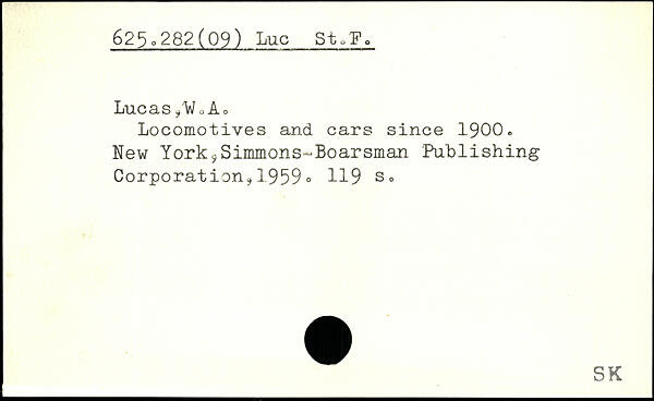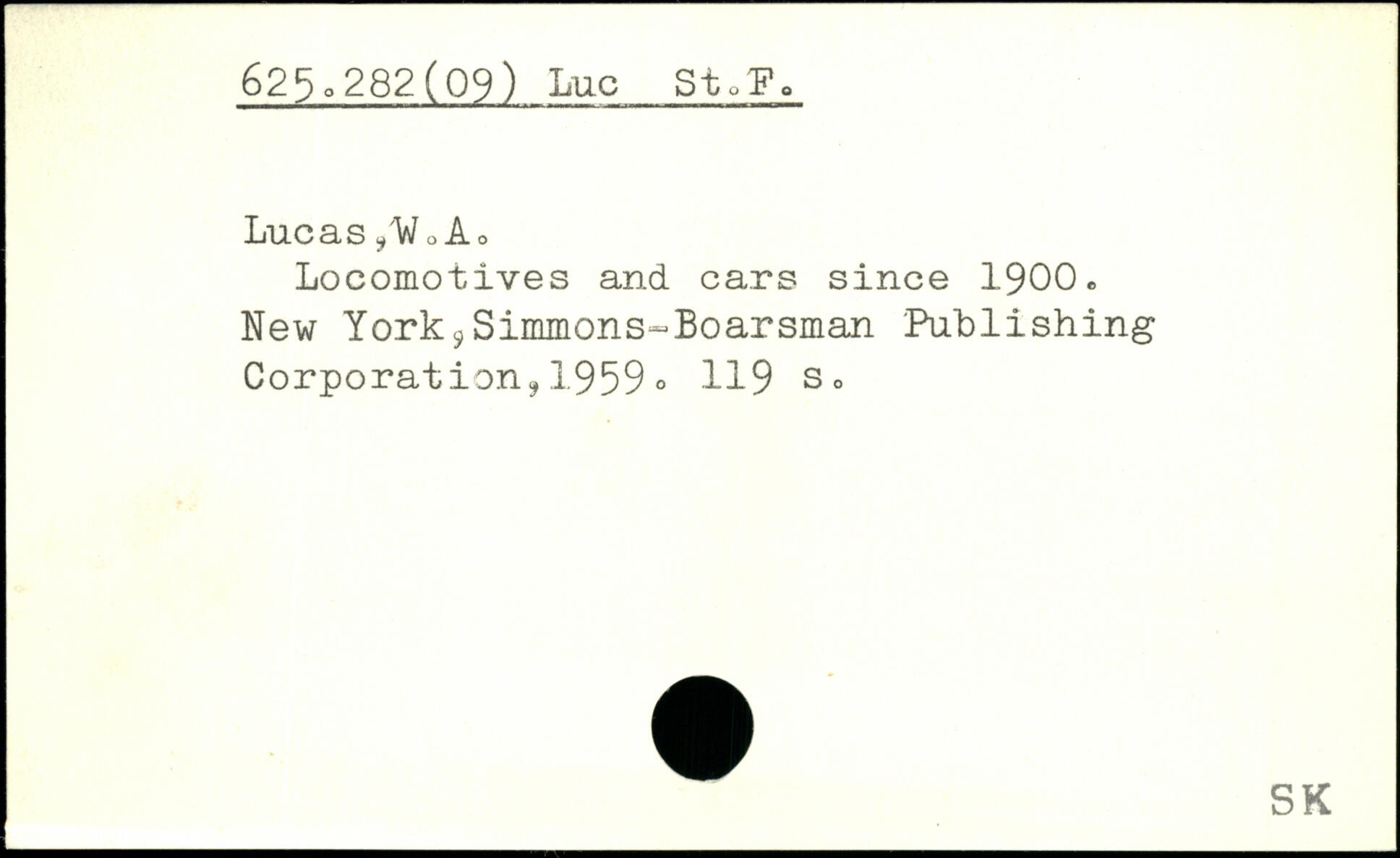 Lucas ,'WoAo Locomotives and cars since 1900. New YorkjSimmons^Boarsman Publishing Corporation,1959