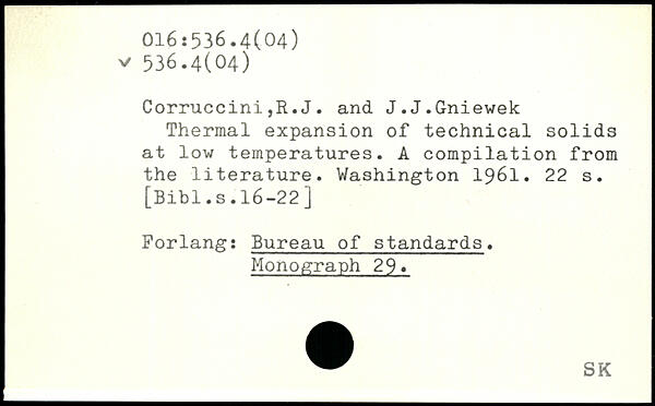 Thermal expansion of technical solids at low temperatures. A compilation from the literature.