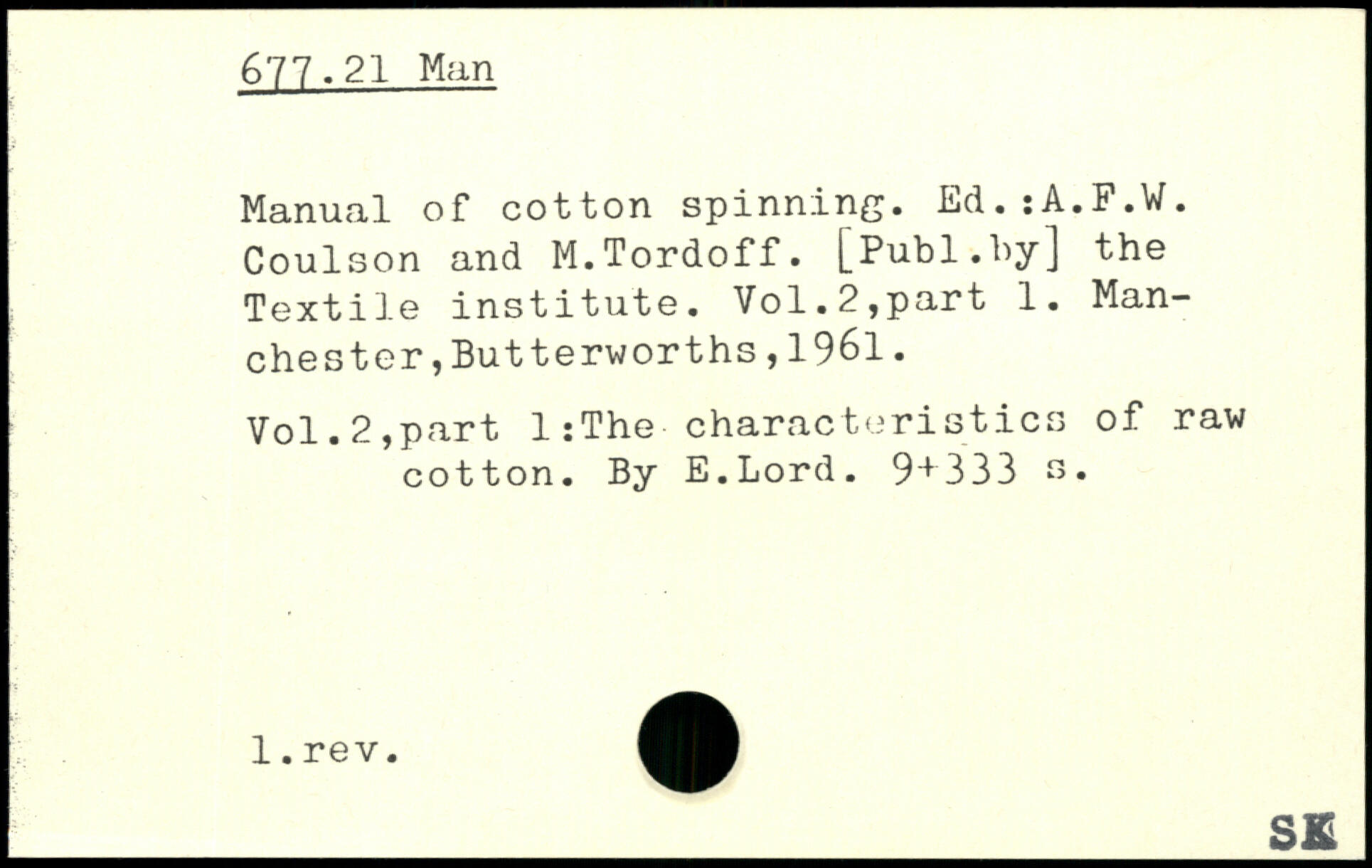 Manual of cotton spinning. Iijd. :A.F.W. Coulson and M.Tordoff.