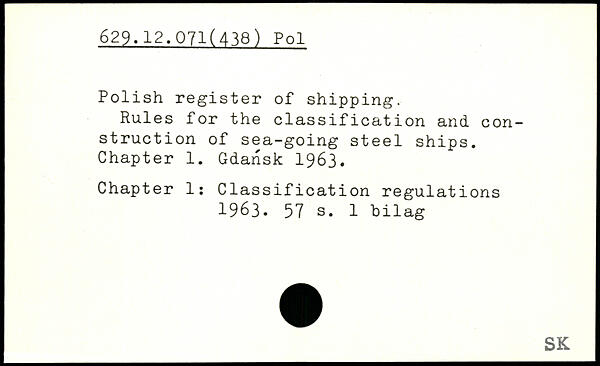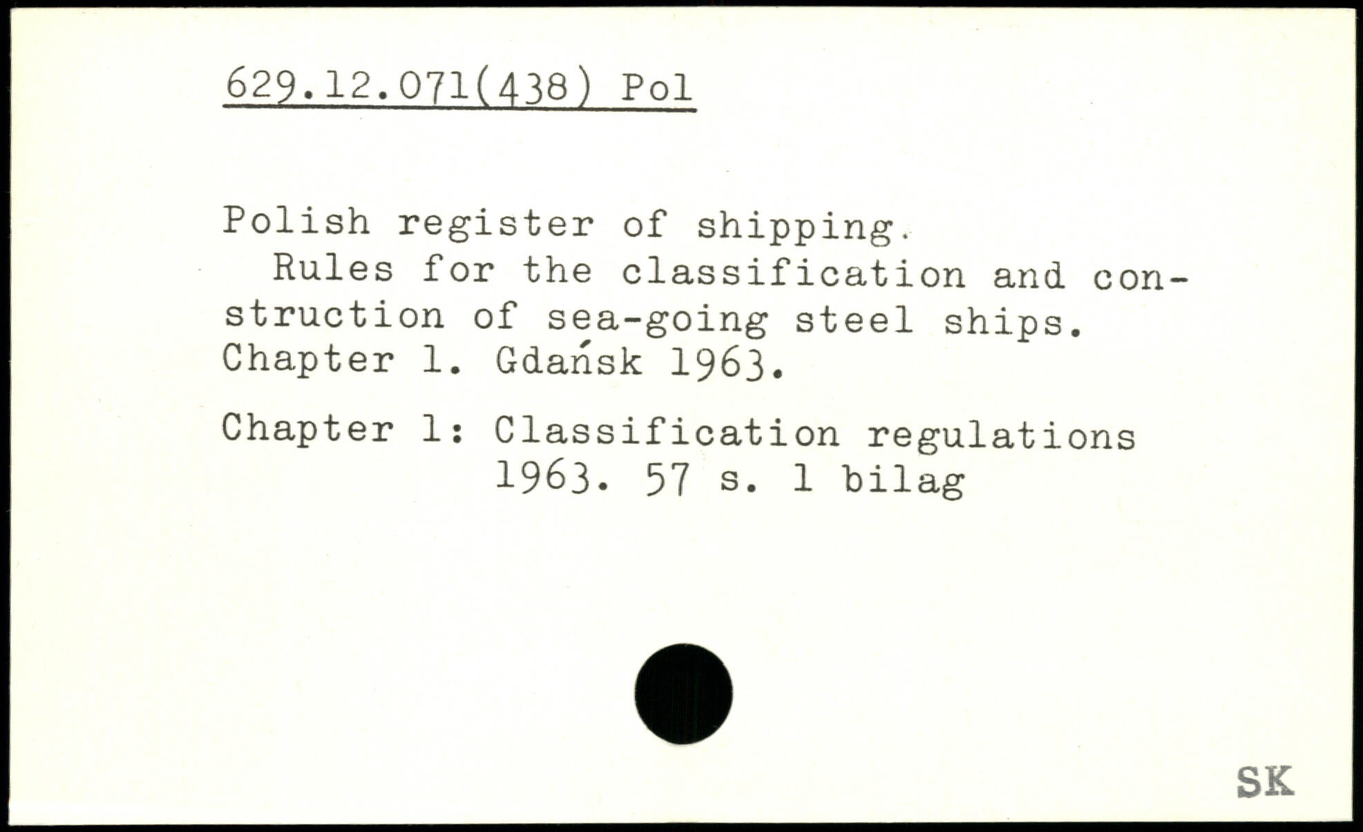 Polish register of shipping. Rules for the classification and construction of sea-going steel ships. Chapter 1. Gdansk 1963. Chapter 1: Classification regulations 1963.