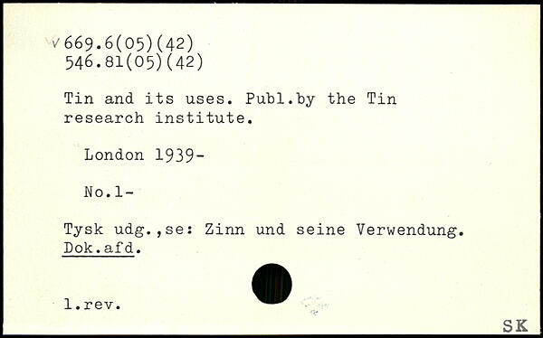 Tin and its uses. Pu.bl.by the Tin research institute.