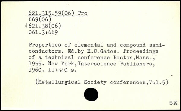 Properties of elemental and compound semiconductors. Ed.by H.C.Gatoso Proceedings of a technical conference Boston,Mass.s 1959.