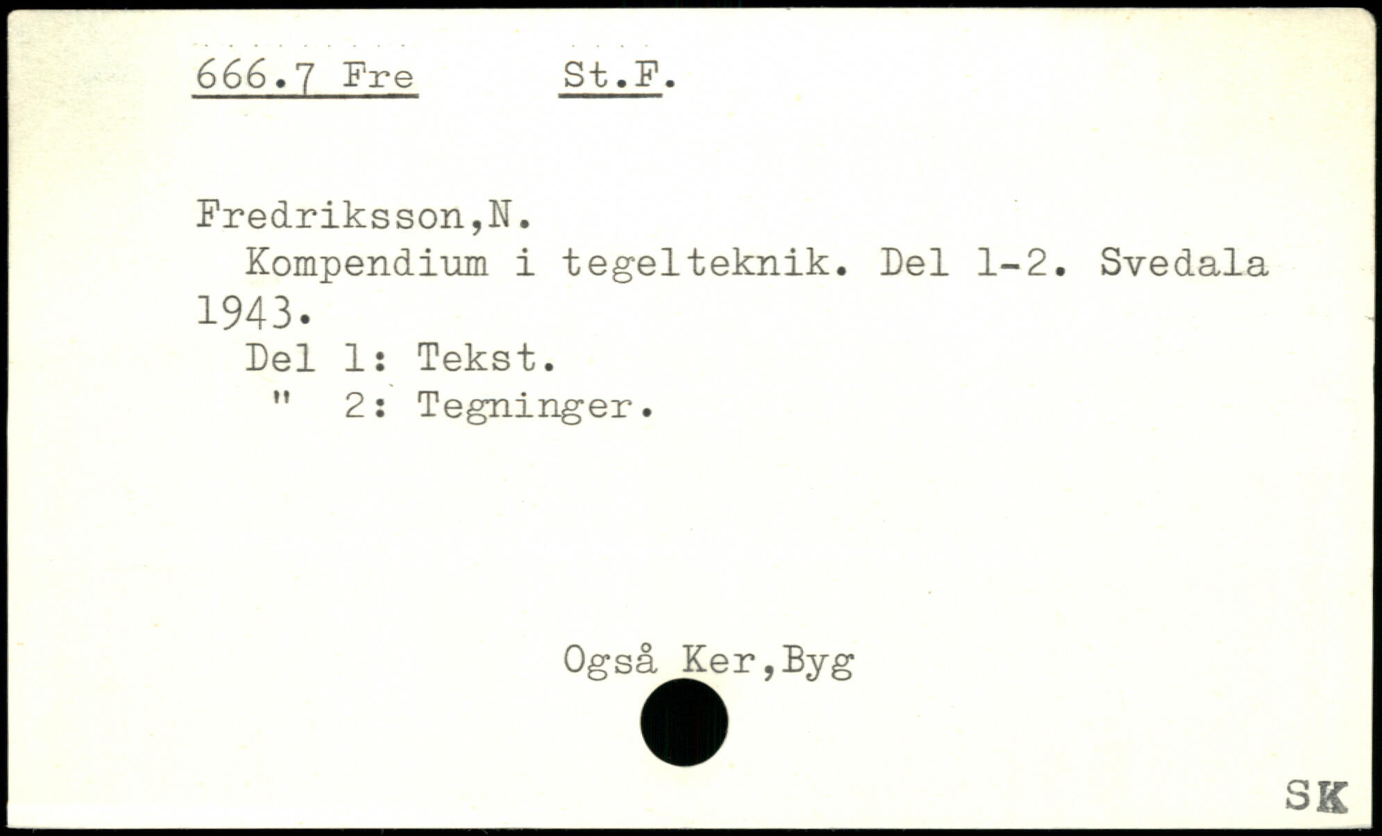 Kompendium i tegelteknik. Del 1-2. Svedala 1943. Del 1: Tekst. " 2: Tegninger. Ogs^^r ,Byg