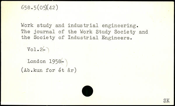 Work study and industrial engineering. The journal of the Work Study Society and the Society of Industrial Engineers.