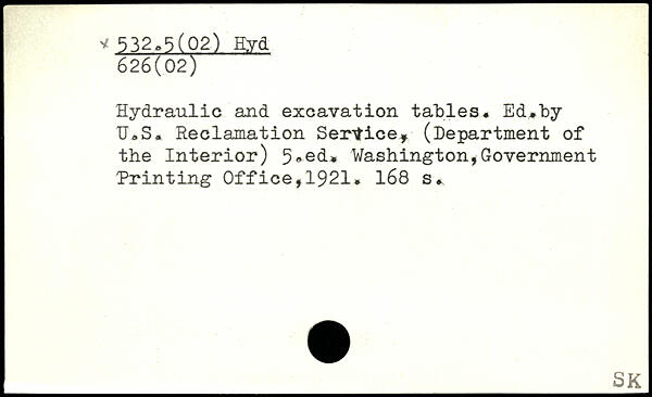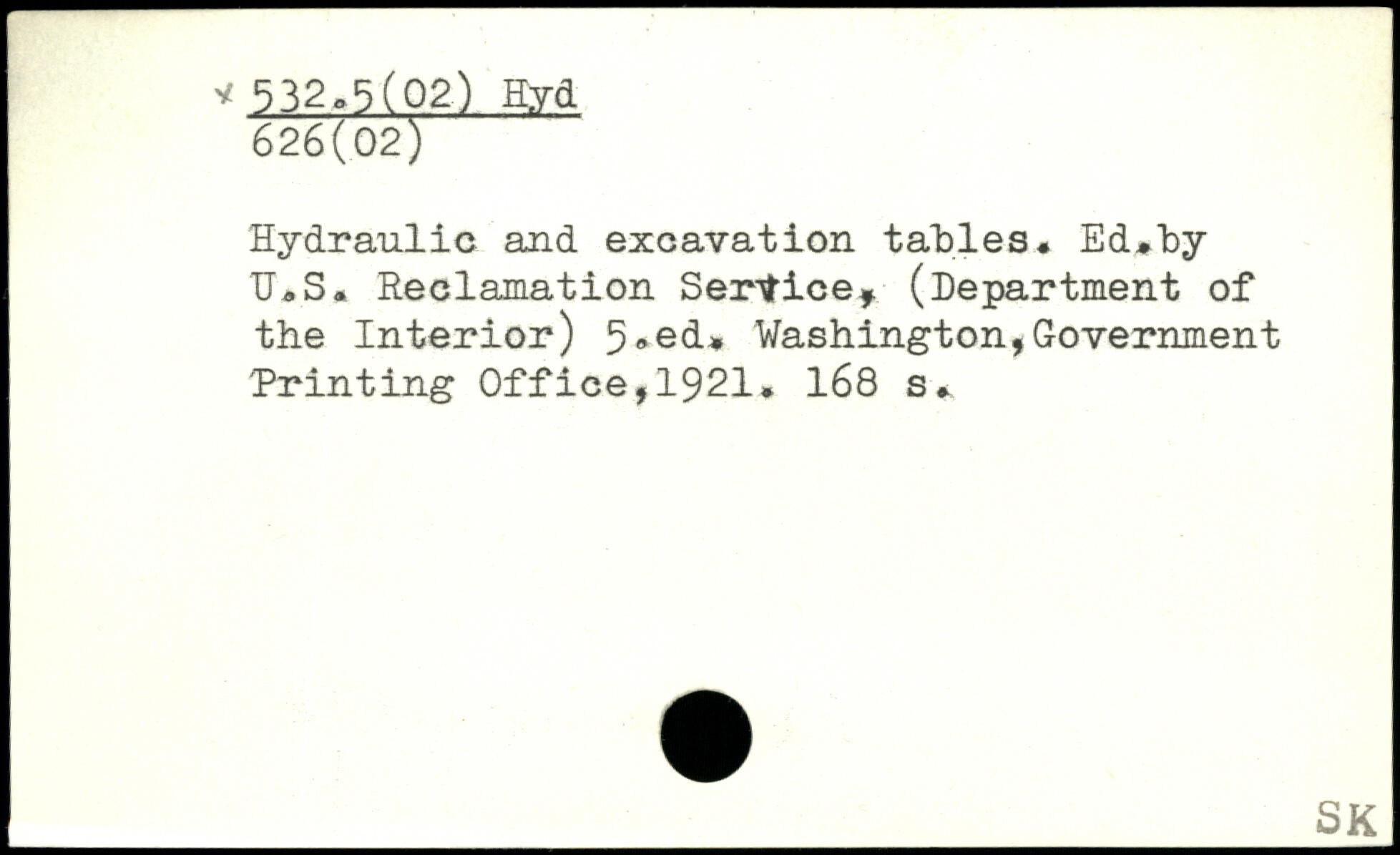 Hydraulic and excavation tables. Ed,by U.S. Reclamation Service. (Department of the Interior)