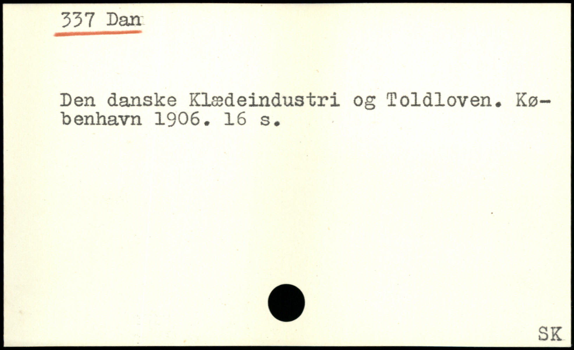 Den danske Klædeindustri og Toldloven.