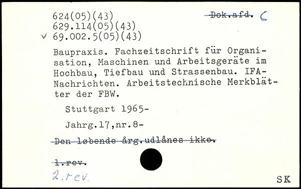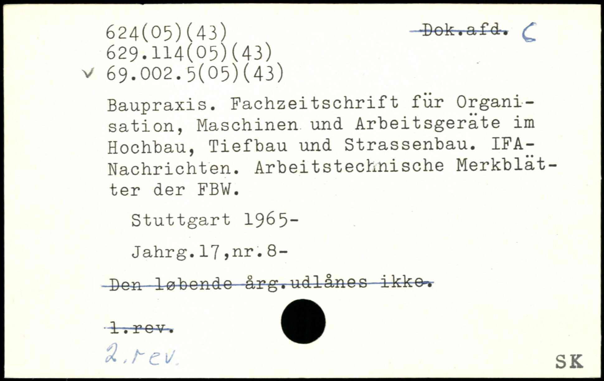Baupraxis. Fachzeitschrift für Organisation, Maschinen und Arbeitsgeräte im Hochbau, Tiefbau und Strassenbau. IFA-Nachrichten. Arbeitstechnische Merkblätter der FBW.