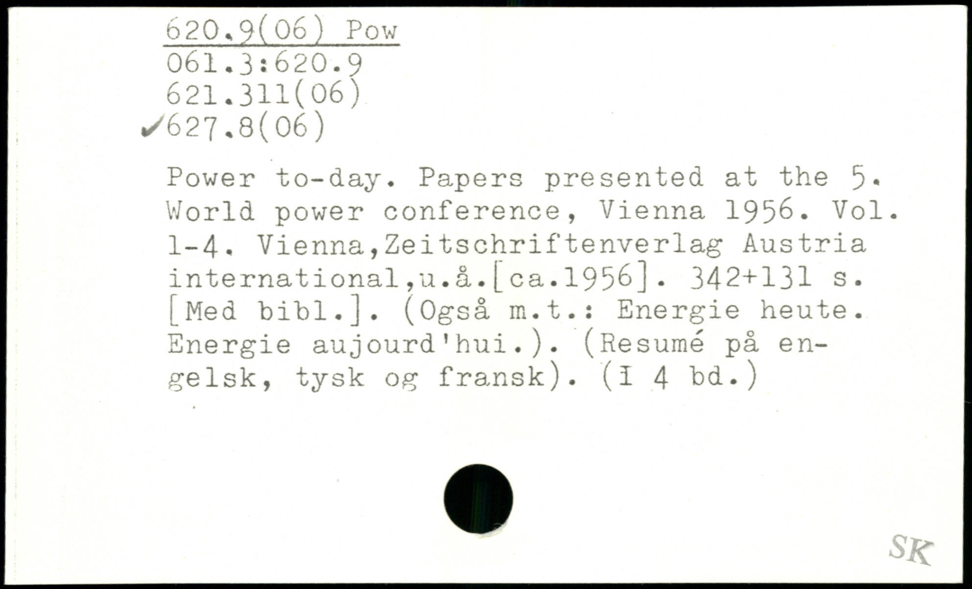 Power to-day. Papers presented at the 5, World power conference, Vienna 1956. Vol. 1-4. Vienna,Zeitschriftenverlag Austria international,u.å.[ca.1956].