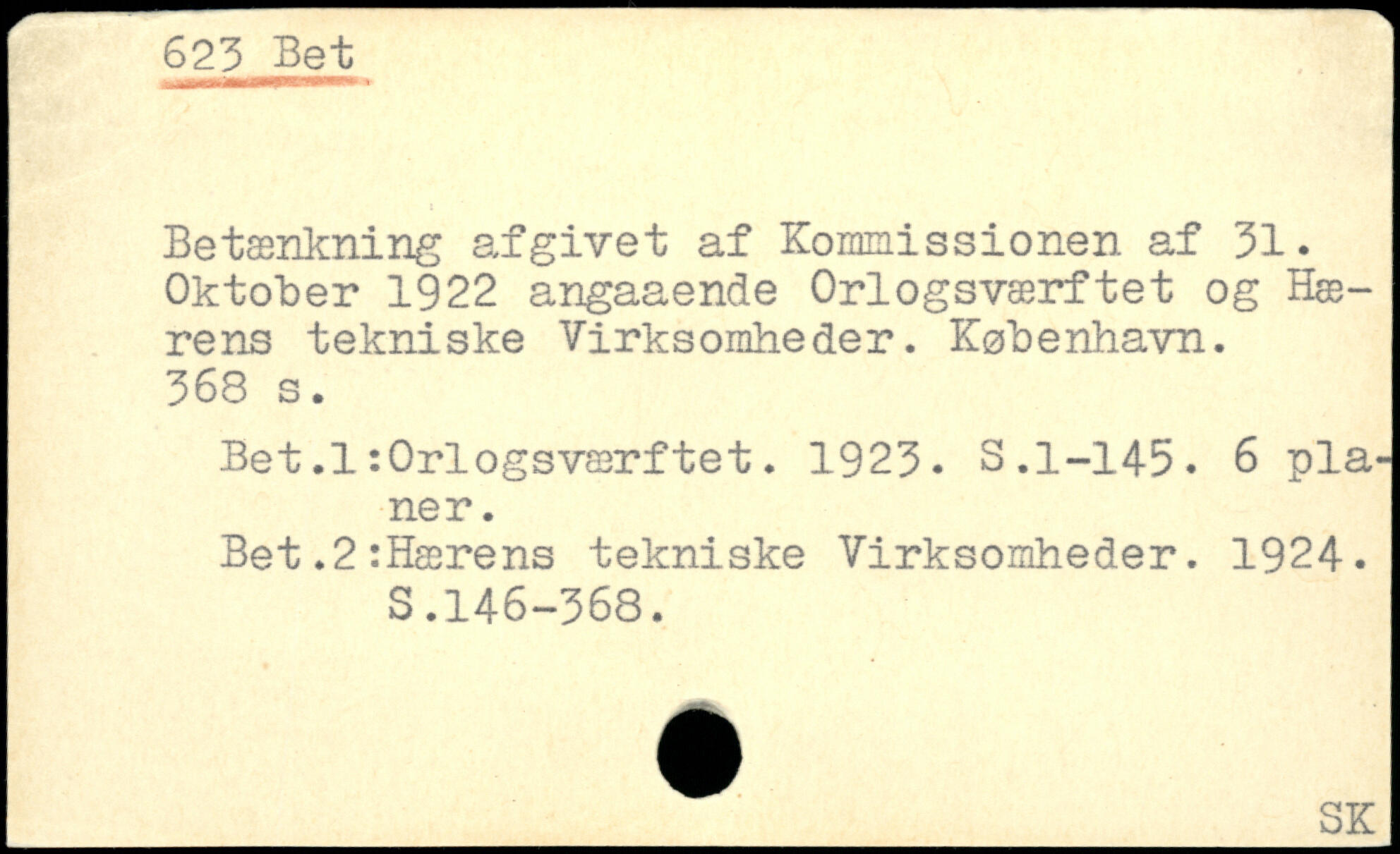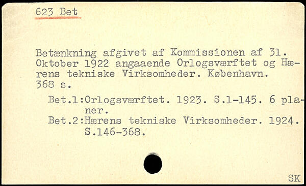Betænkning afgivet af Kommissionen af 31. Oktober 1922 angaaende Orlogsværftet og Hærens tekniske Virksomheder. København.