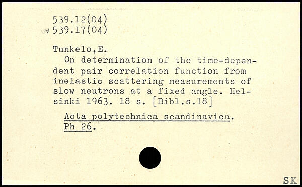 On determination of the time-dependent pair correlation function from inelastic scattering measurements of slow neutrons at a fixed angle.