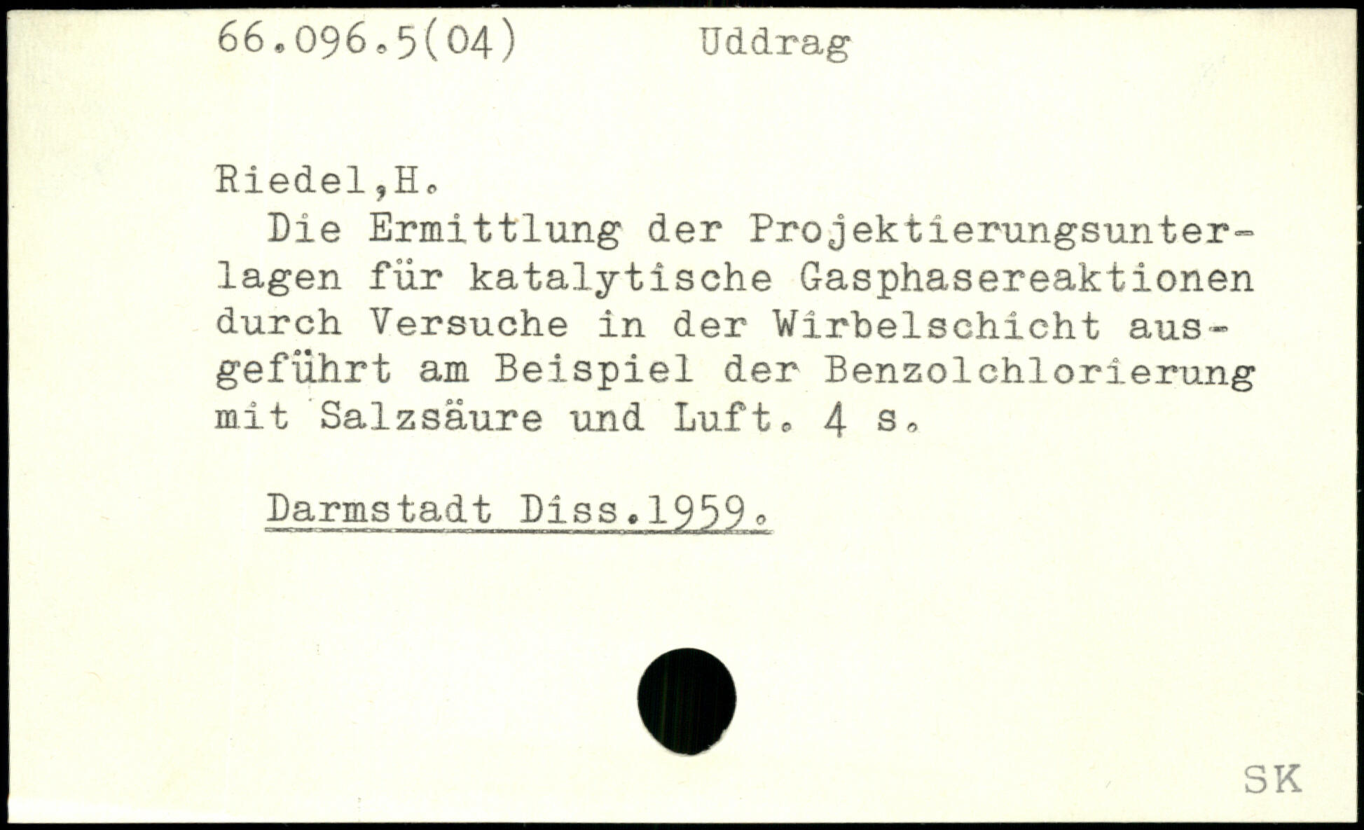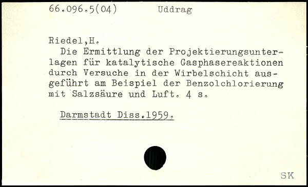 Die Ermittlung der Projektierungsunter-lagen für katalytische Gasphasereaktionen durch Versuche in der Wirbelschicht aus-geführt am Beispiel der Benzolchlorierung mit Salzsäure und Luft,.