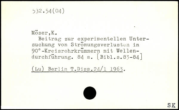 Beitrag zur experimentellen Untersuchung von Strömungsverlusten in 90.-Kreisrohrkrümmern mit Wellendurchführung.
