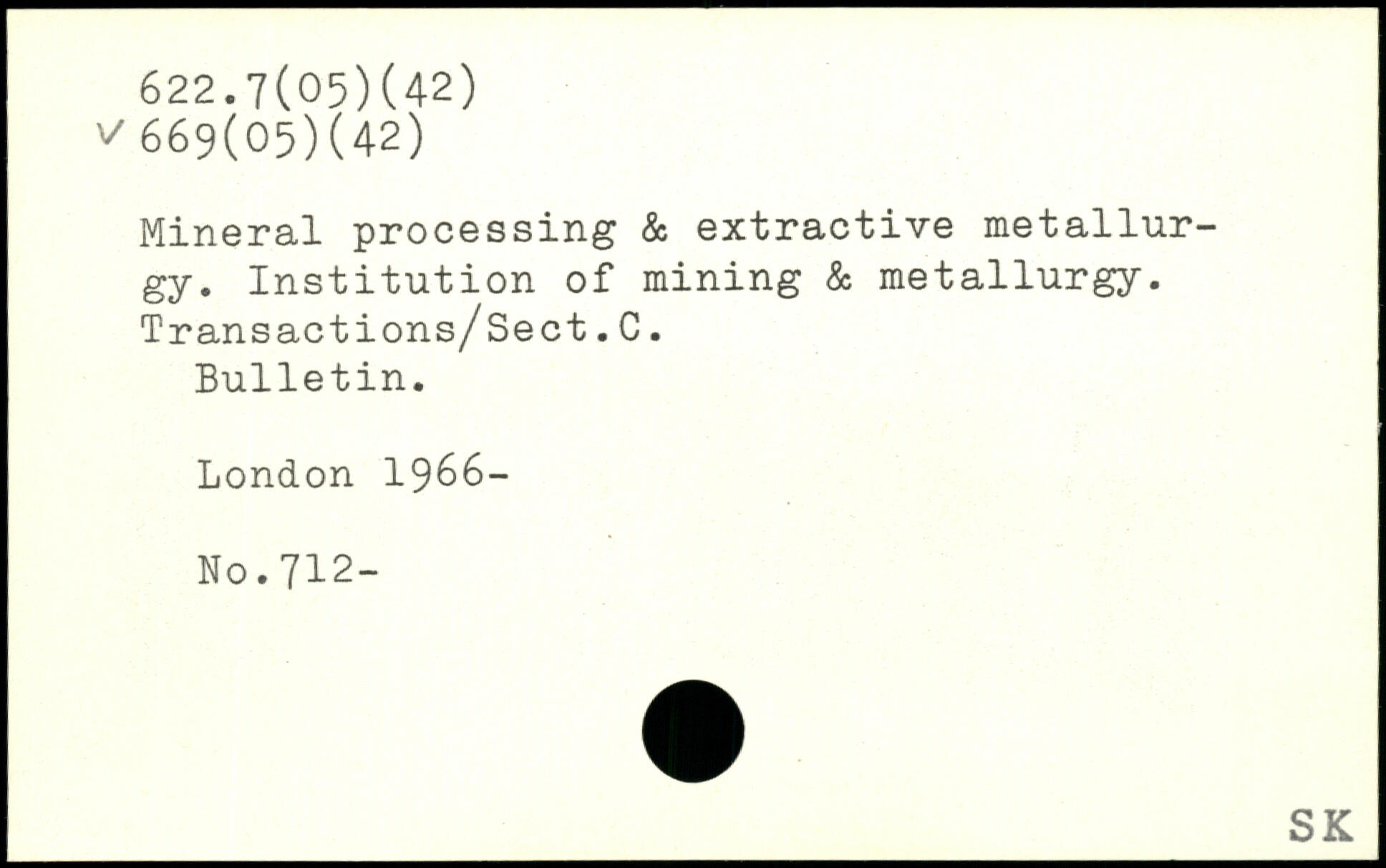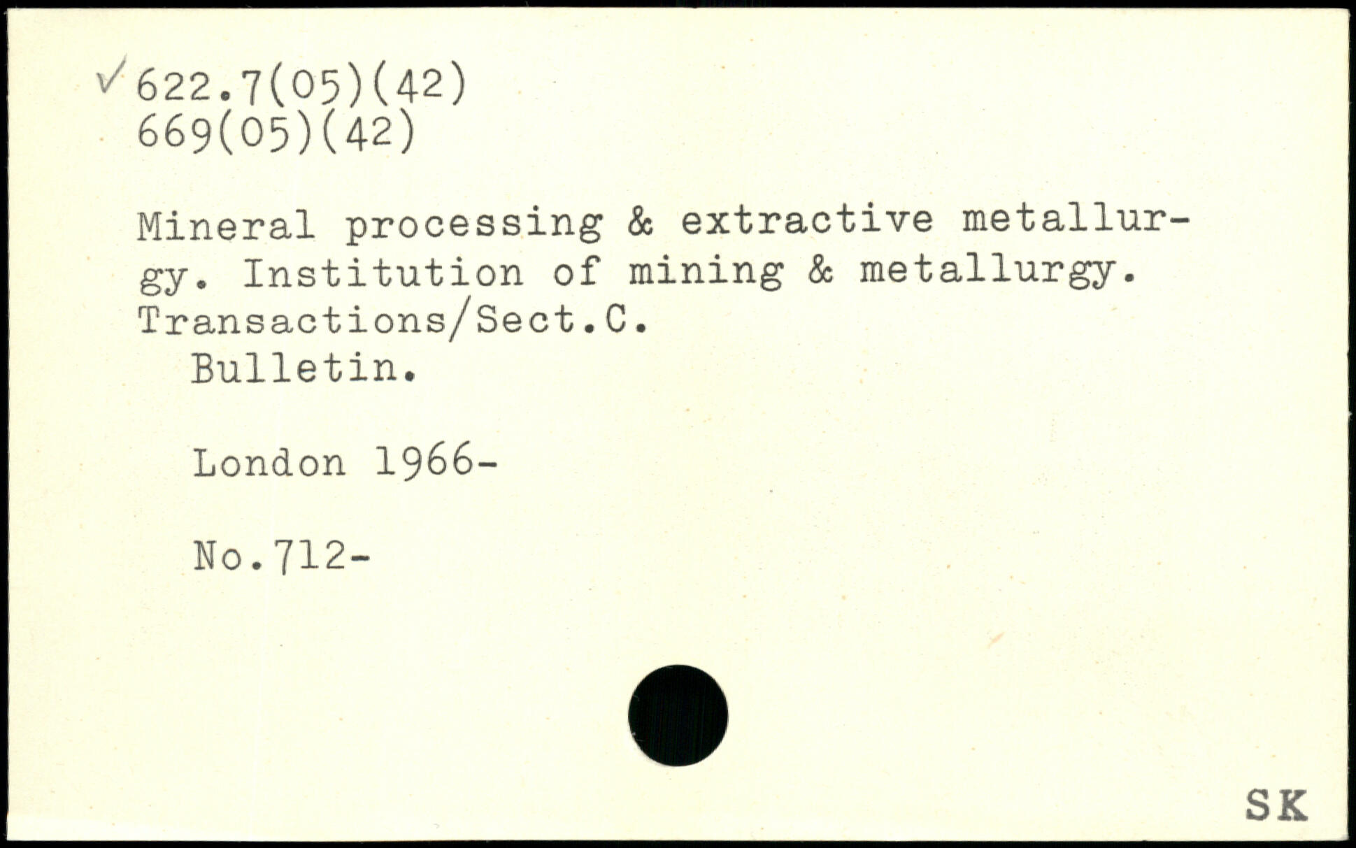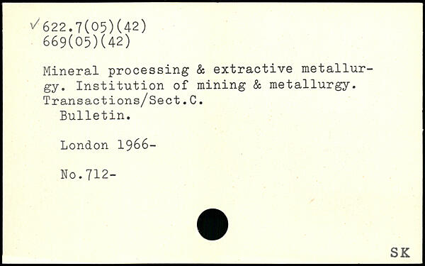 Mineral processing & extractive metallurgy. Institution of mining & metallurgy. Transactions/Sect.C. Bulletin.