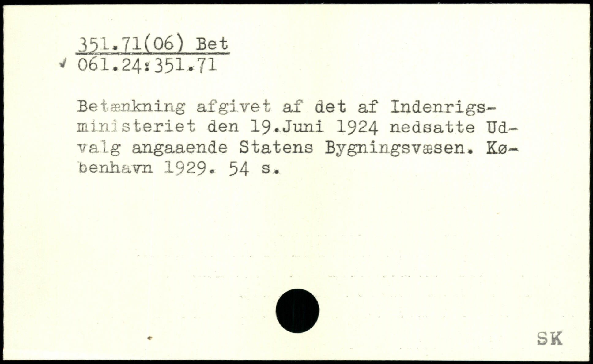 Betænkning afgivet af det af Indenrigsministeriet den 19.Juni 1924 nedsatte Udvalg angaaende Statens Bygningsvæsen.