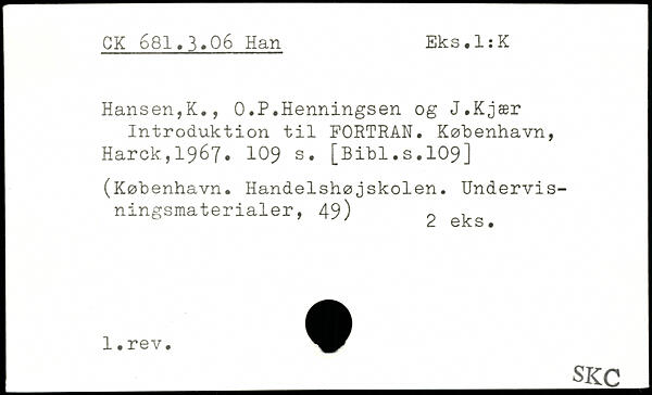 Hansen,K. , 0.P.Henningsen og J.Kjær Introduktion til FORTRAN.