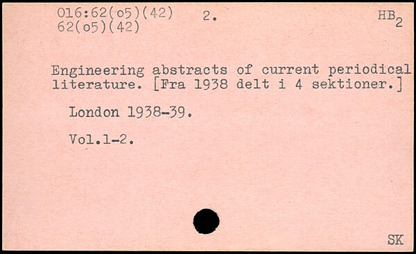 Engineering abstracts of current periodical literature. [Fra 1938 delt i
