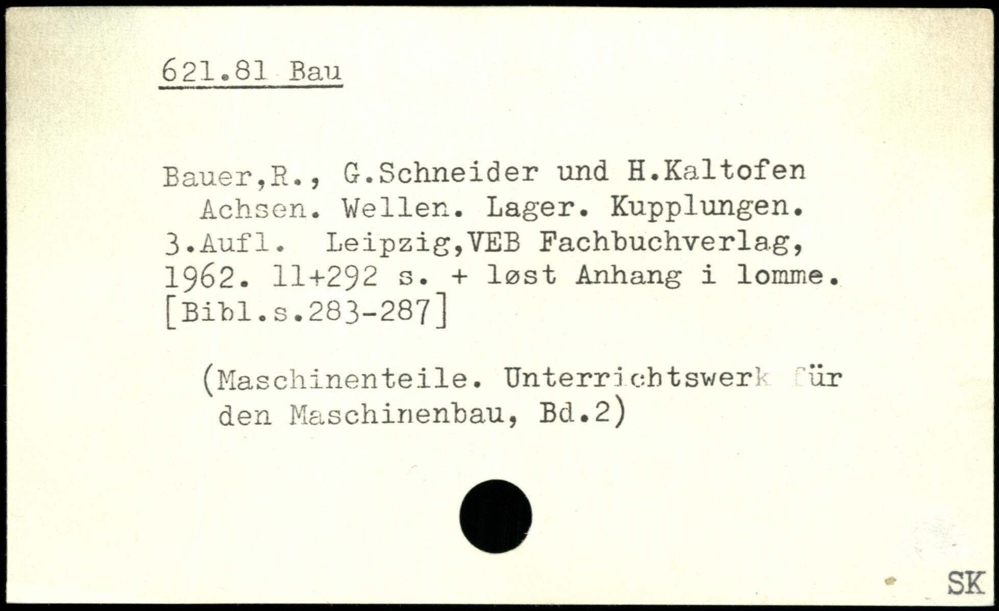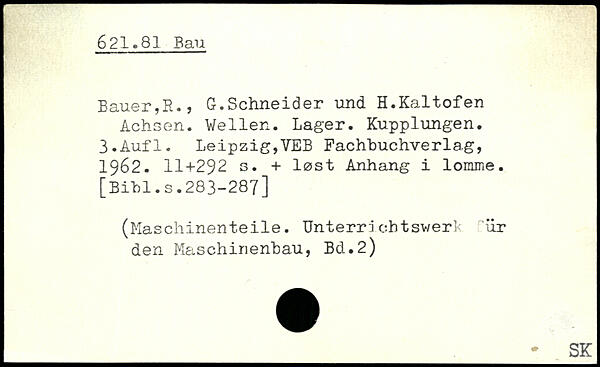 Bauer,R., G.Schneider und H.Kaltofen Achsen. Wellen. Lager. Kupplungen. 3.Auf 1. Leipzig,VEB Fachbuchverla.g, 1962. II