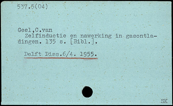 ZeIfinduetie en nawerking in gasontla-dingen.