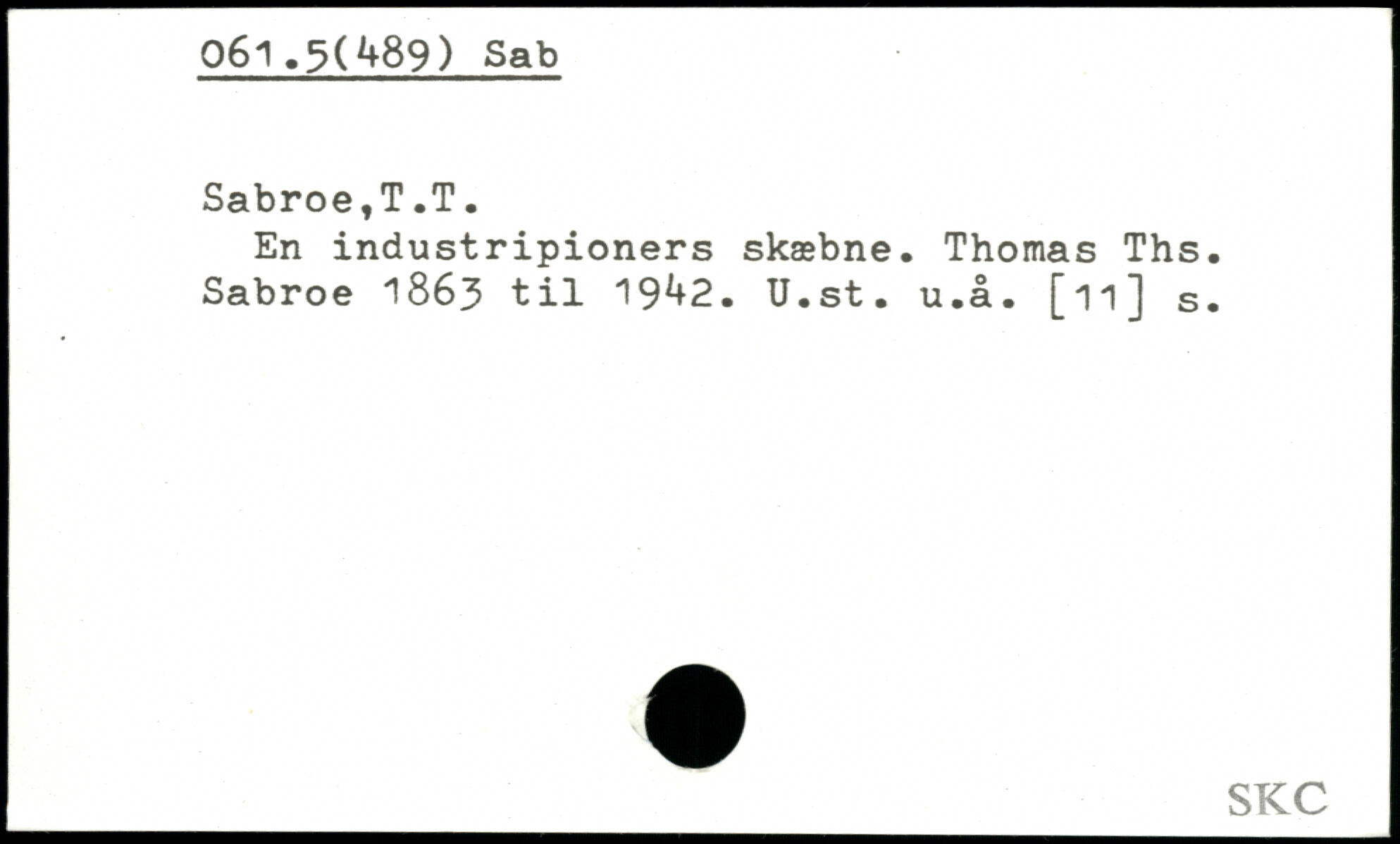 En industripioners skæbne. Thomas Ths. Sabroe 1863 til 19^+2. U.st.