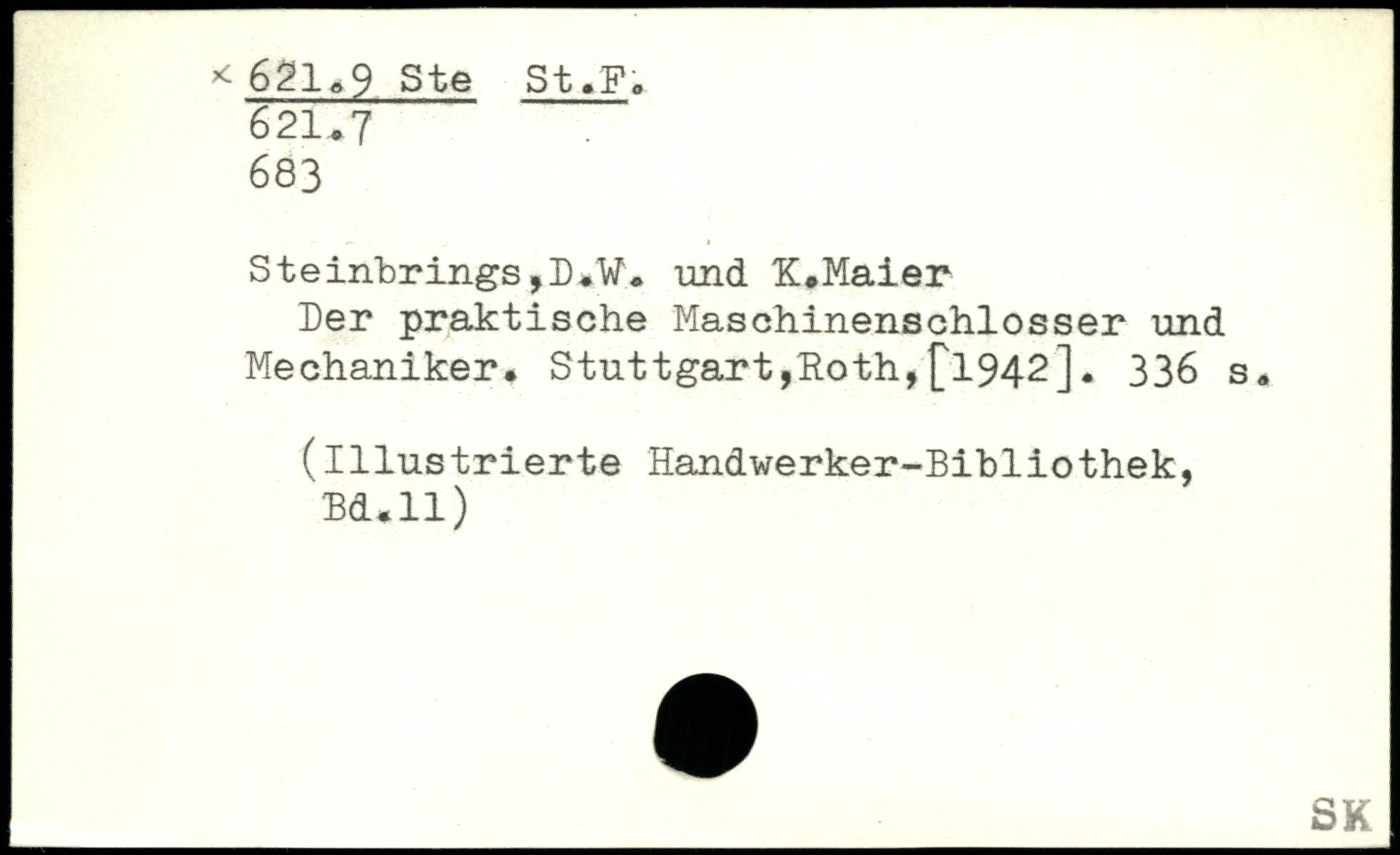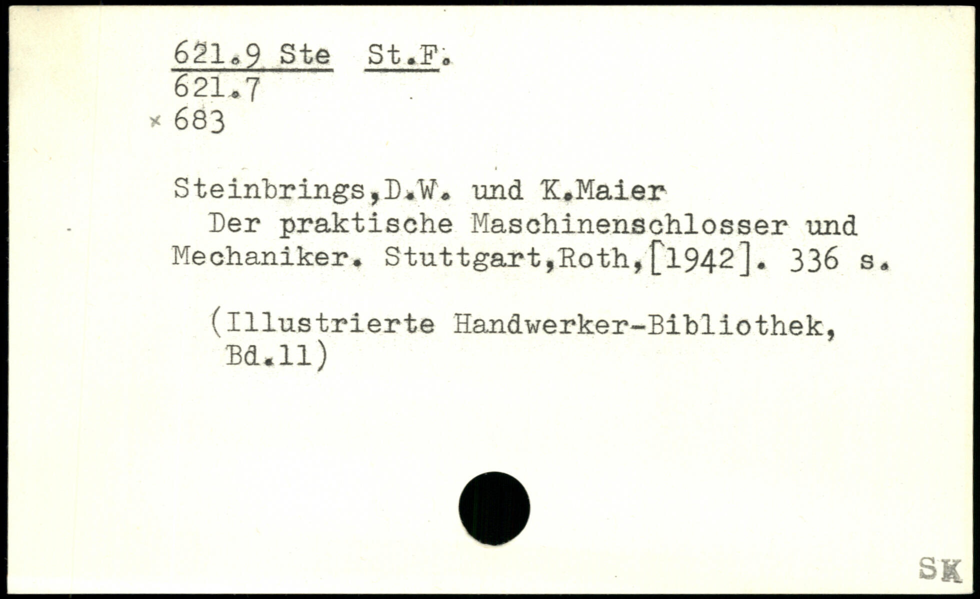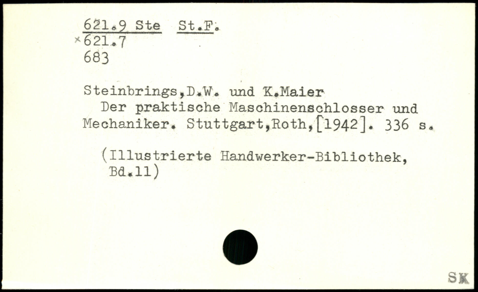 Der praktische Maschinenschlosser und Mechaniker. Stuttgart,Hoth,£1942].