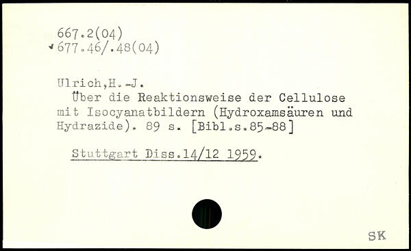 tîber die Reaktionsweise der Cellulose mit Isocyanatbildern (HydroxamsEuren und Hydrazide).