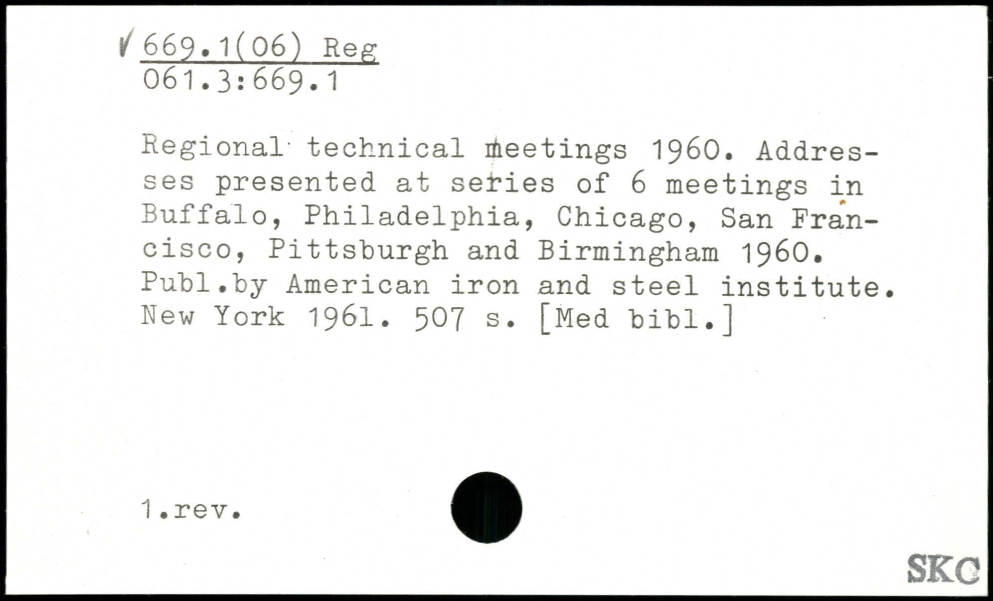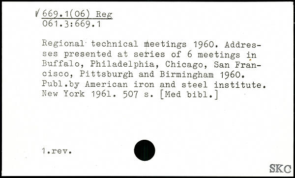 Regional- technical Meetings 1960. Addresses presented at series of 6 meetings in Buffalo, Philadelphia, Chicago, San Francisco, Pittsburgh and Birmingham 1960.