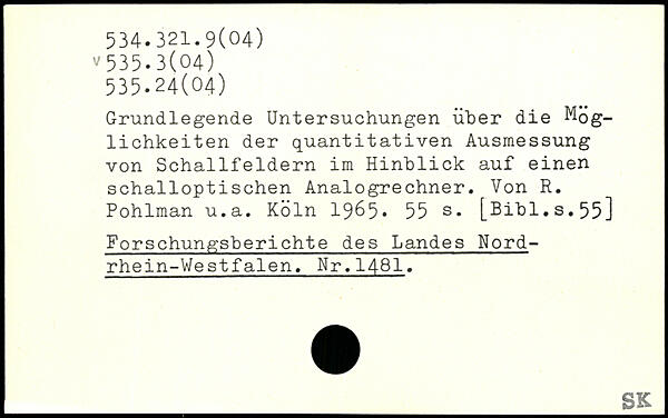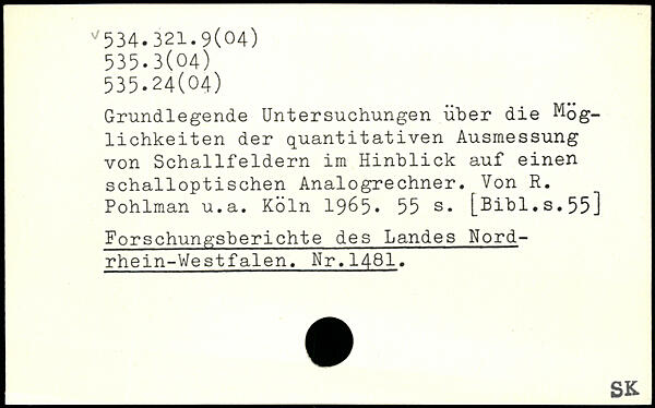 Grundlegende Untersuchungen über die ^og-lichkeiten der quantitativen Ausmessung von Schallfeldern im Hinblick auf einen schalloptischen Analogrechner. Von R. Pohlman u.a.