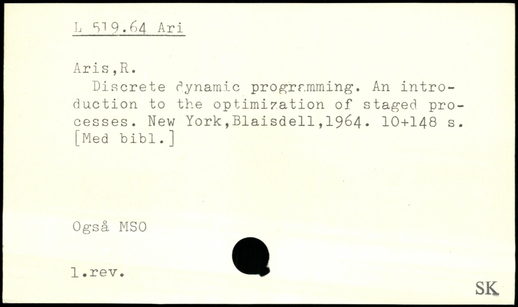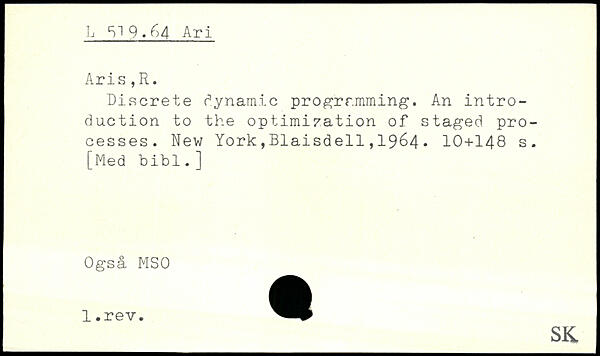 Discrete dynamic programming. An introduction to the optimization of staged processes.