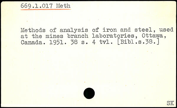 Methods of analysis of iron and steel, used at the mines branch laboratories, Ottawa, Canada. 1951.
