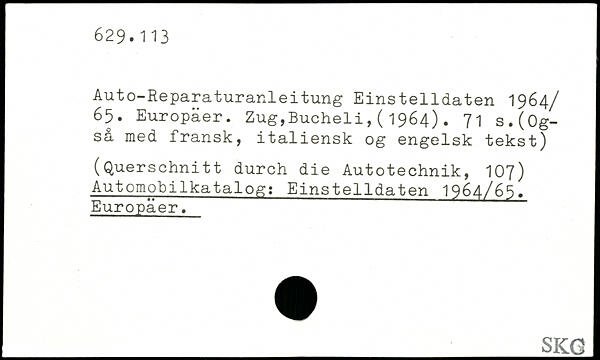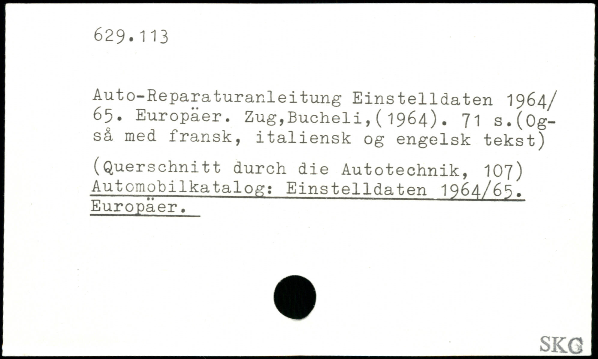 Auto-Reparaturanleitung Einstelldaten 1964/ 65. Europäer. Zug,Bucheli,(1964).