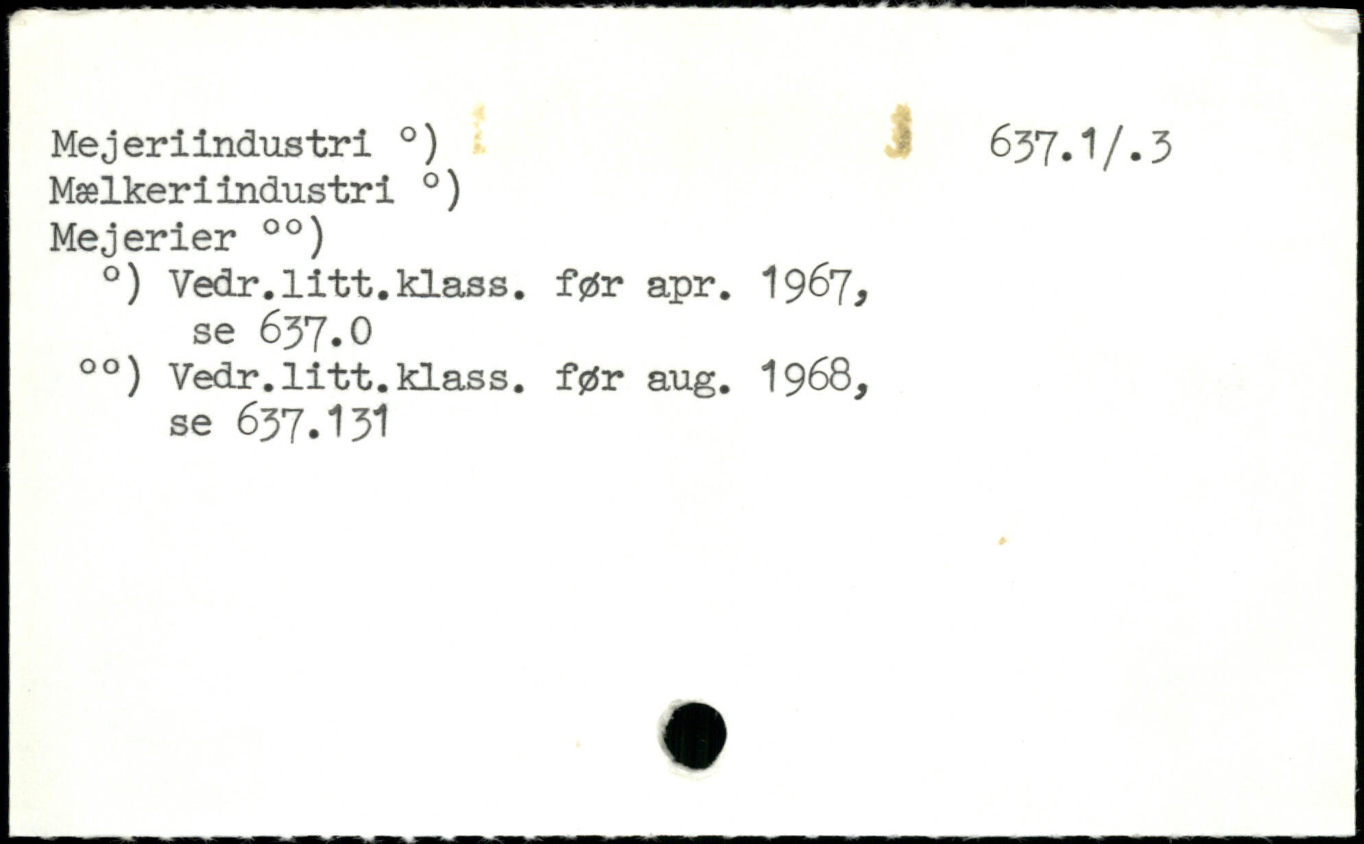 Mælkeriindustri .) Mejerier 00) .) Vedr.litt.klass, før apr. 1967, se 637.O 00) Vedr.litt.klass, før aug. 1968, se 637.I3I