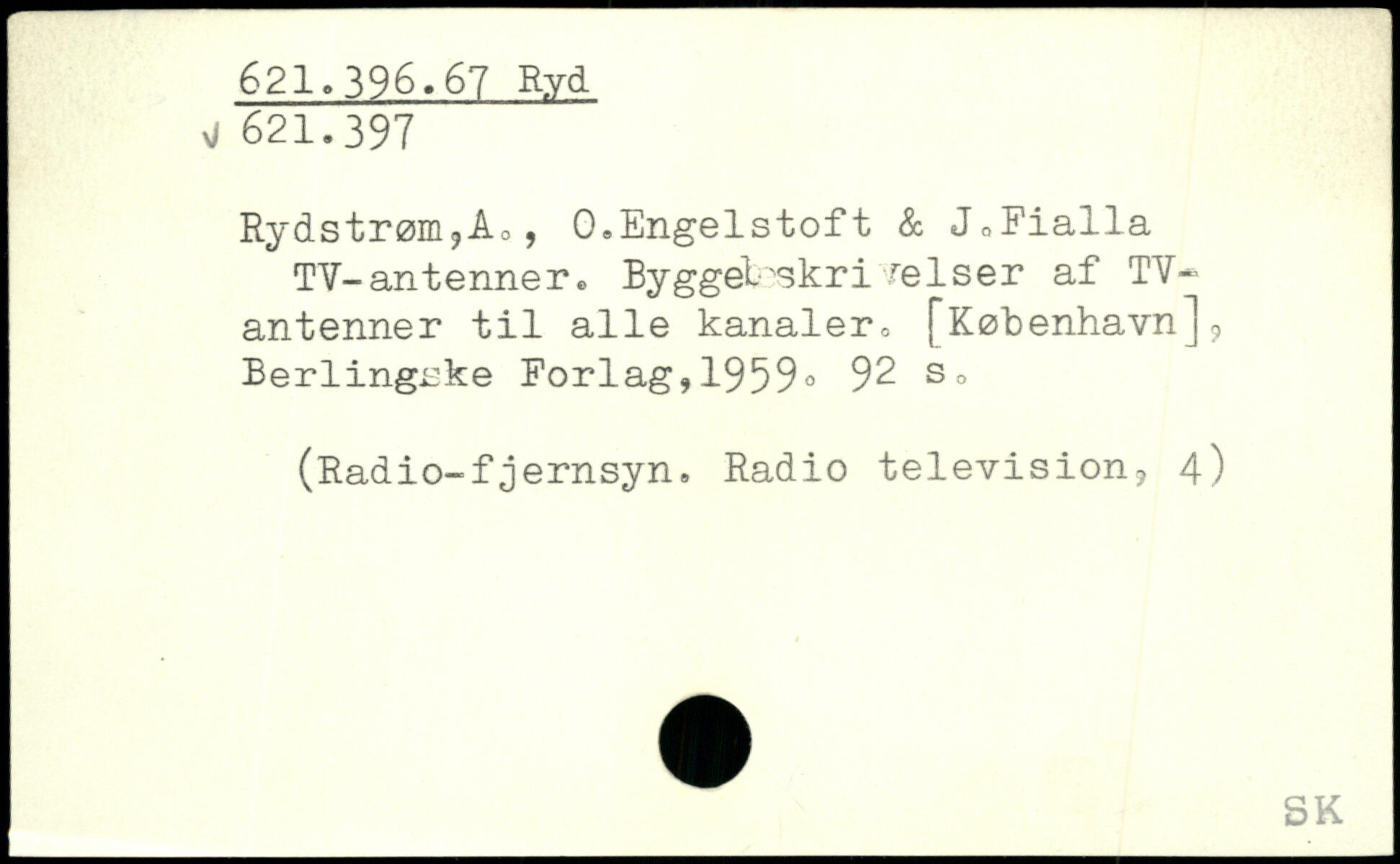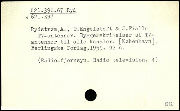 Rydstrøm,Ao, 0.Engelstoft & JoFialla TV-antenner , Bygget'skri feiser af TY. antenner til alle kanaler. [København]9 Berlingske Forlag,1959.