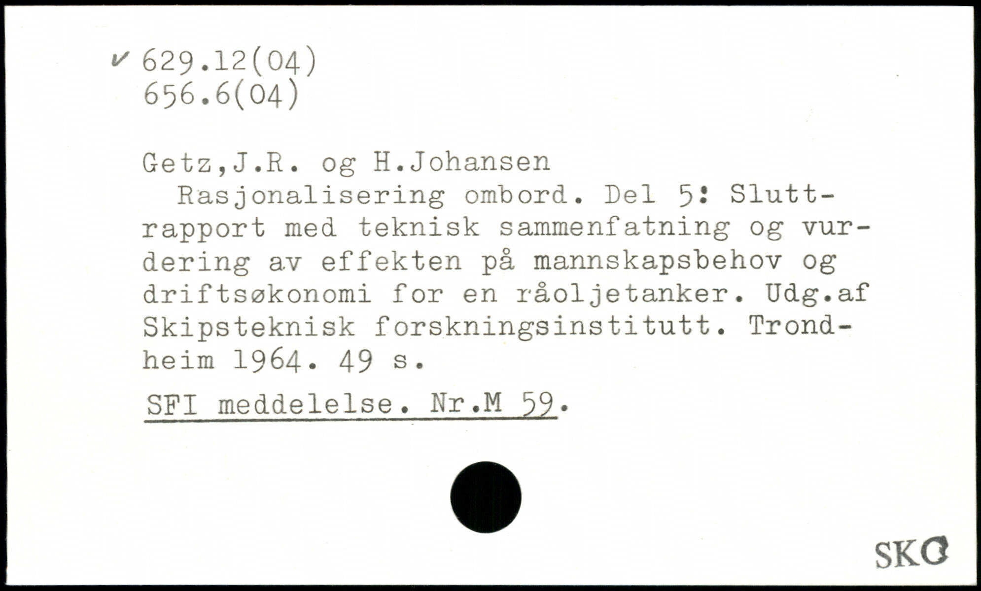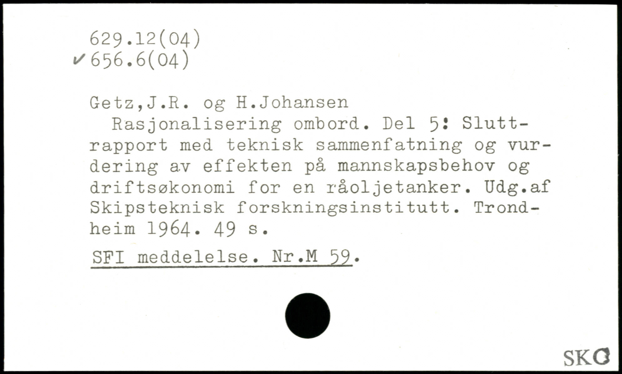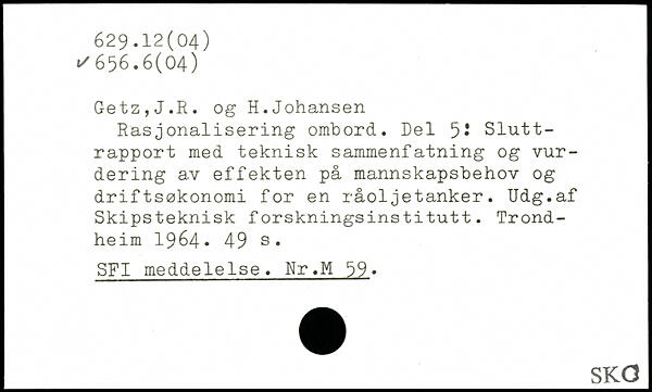 Rasjonalisering ombord. Del 5! Slutt-rapport med teknisk sammenfatning og vurdering av effekten på mannskapsbehov og driftsøkonomi for en råoljetanker. Udg.af Skipsteknisk forskningsinstitutt.