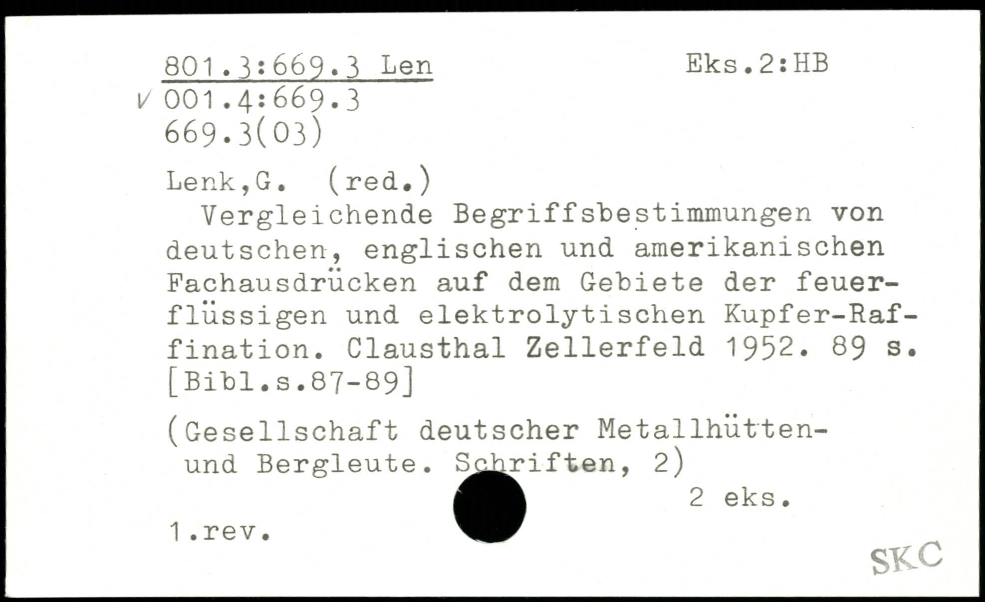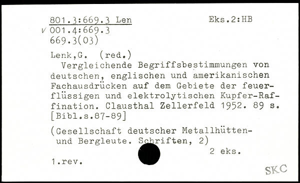 Vergleichende BegriffsbeStimmungen von deutschen, englischen und amerikanischen Fachausdrücken auf dem Gebiete der feuerflüssigen und elektrolytischen Kupfer-Raffination. Clausthal Zellerfeld 1952.