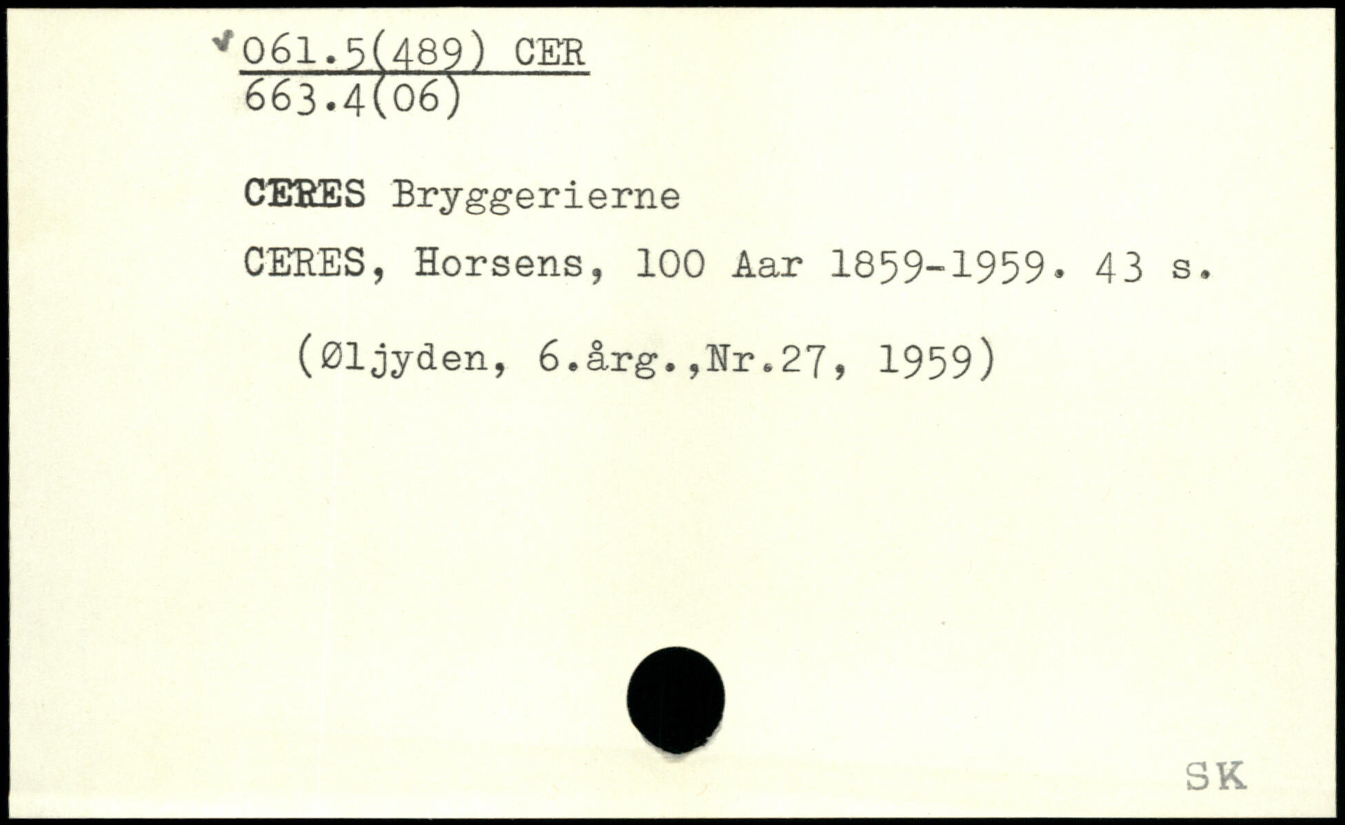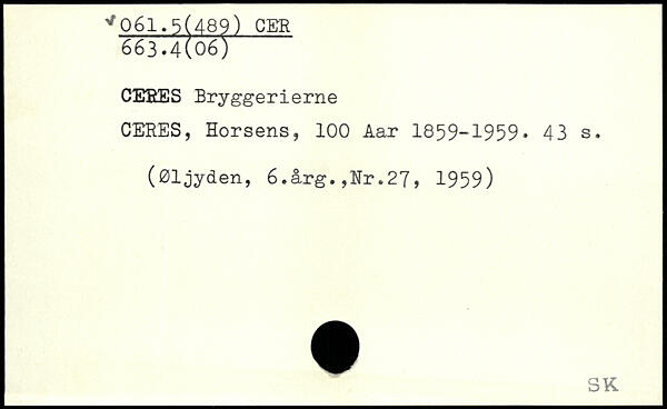 CEEES Bryggerierne CERES, Horsens, 100 Aar 1859-1959.