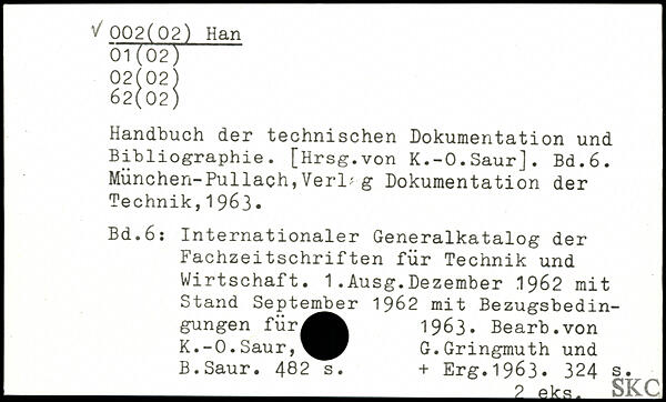 Handbuch der technischen Dokumentation und Bibliographie. [Hrsg.von K.-O.Saur].