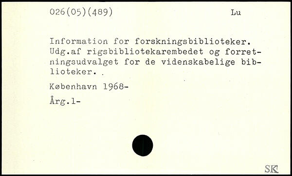 Information for forskningsbiblioteker. Udg.af rigsbibliotekarembedet og forretningsudvalget for de videnskabelige biblioteker..