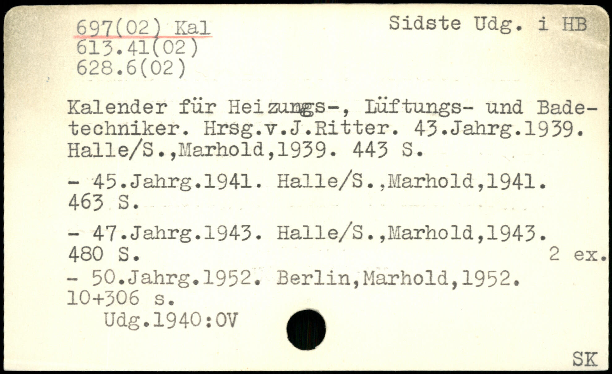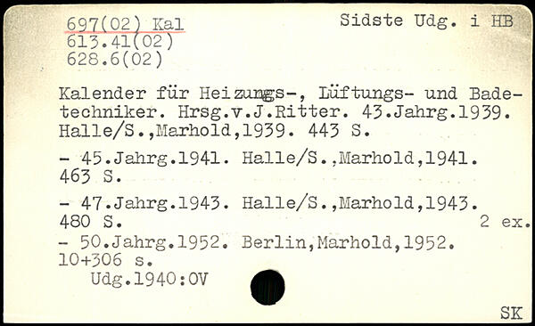 Kalender fur Heizuugs-, Luftungs- und Bade-techniker. Hrsg.v.J.Ritter. 43.Jahrg.1939.