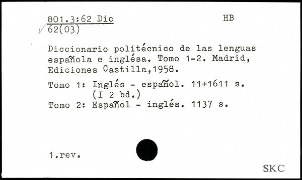 Diccionario politecnico de las lenguas espaftola e inglesa. Tomo 1-2.