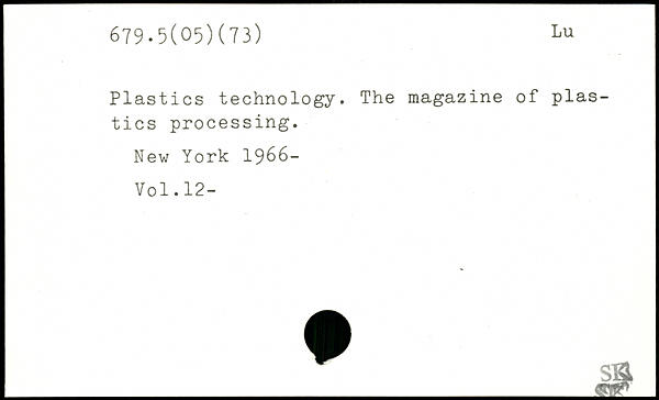 Plastics technology. The magazine of plastics processing.