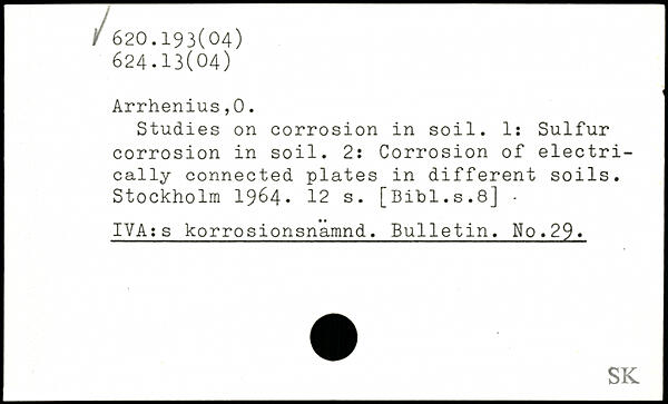 Studies on corrosion in soil. 1: Sulfur corrosion in soil. 2: Corrosion of electrically connected plates in different soils.