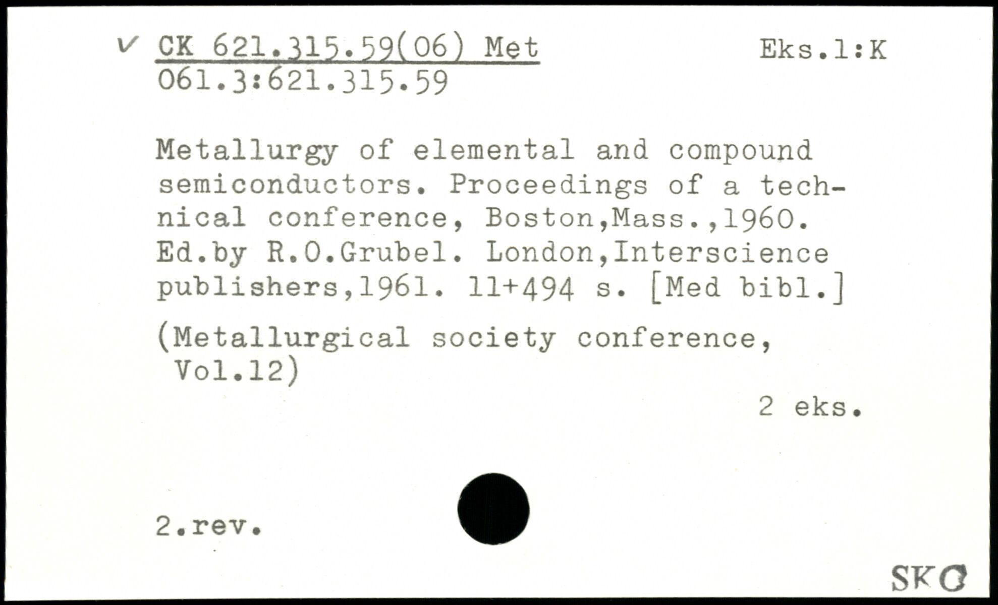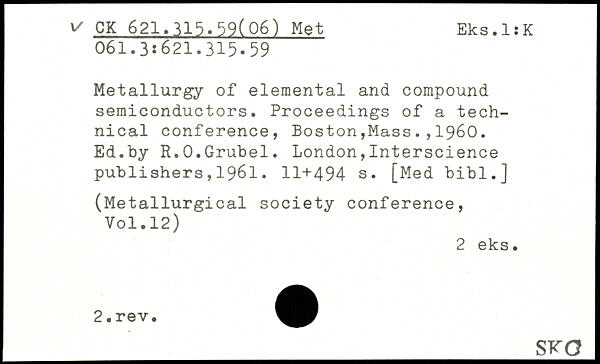 Metallurgy of elemental and compound semiconductors. Proceedings of a technical conference, Boston,Mass1960. Ed.by R.O.Grubel.