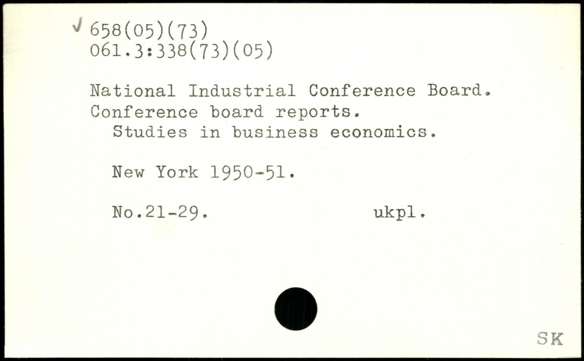 National Industrial Conference Board. Conference board reports. Studies in business economics.