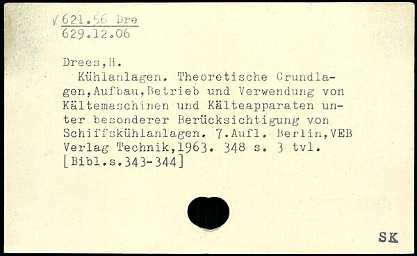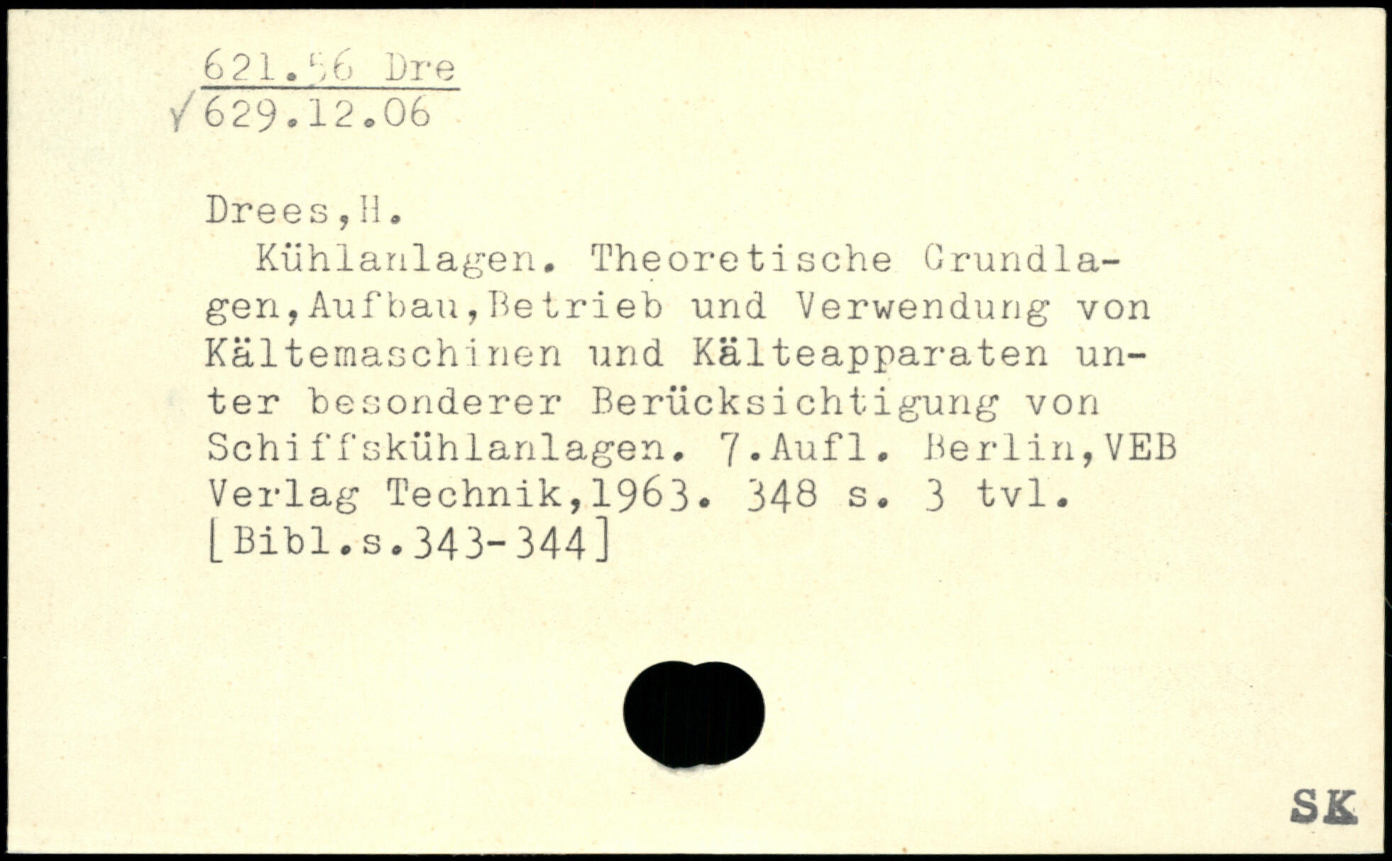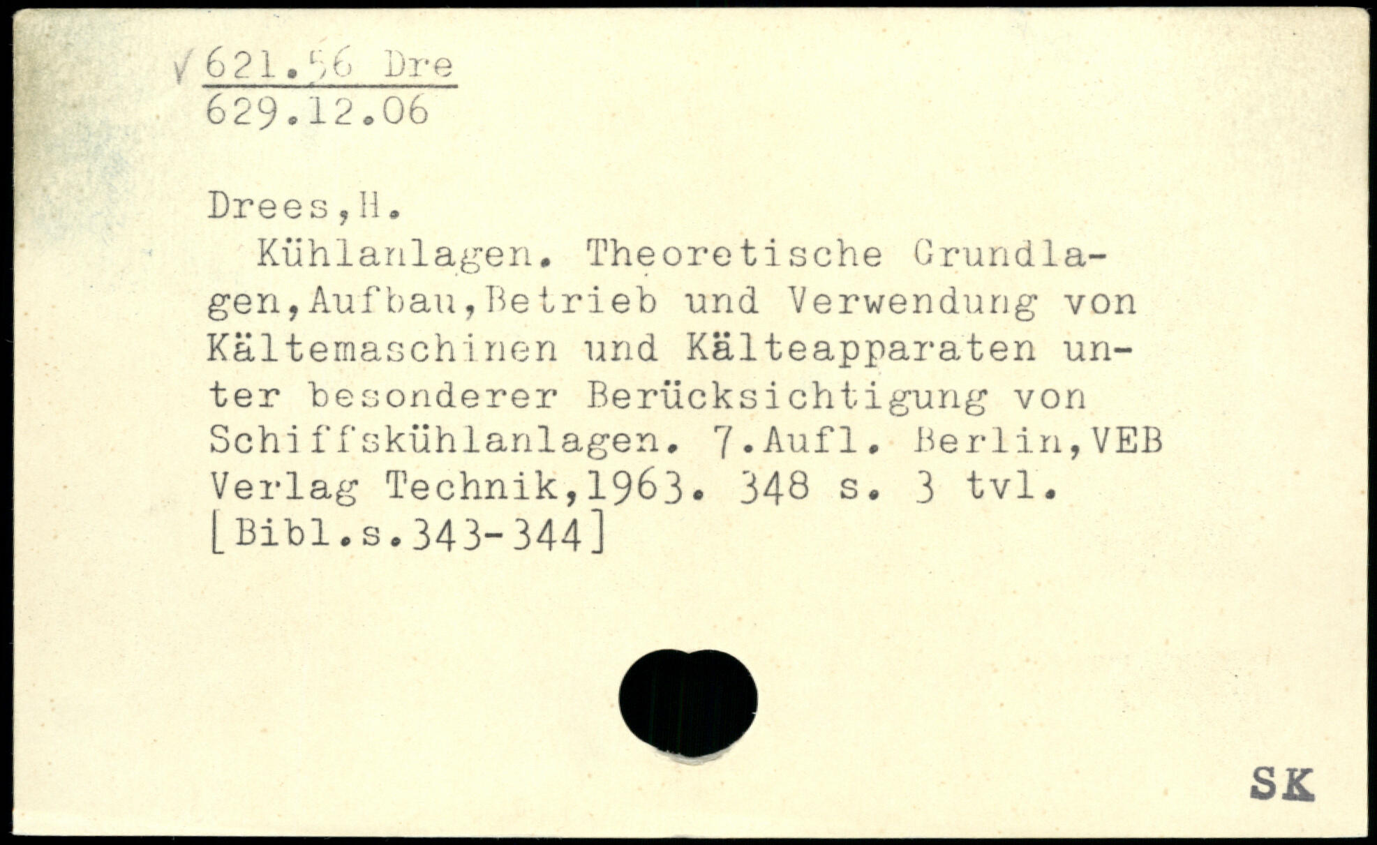 Kühlanlagen. Theoretische Grundlagen, Aufbau,Be trieb und Verwendung von Kältemaschinen und Kälteapparaten unter besonderer Berücksichtigung von Schiffskühlanlagen. 7-Aufl.