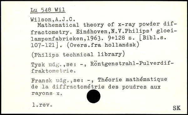 Mathematical theory of x-ray powder dif-fractometry. Eindhoven,NeV.Philips' gloei-lampenfahrieken,1963®