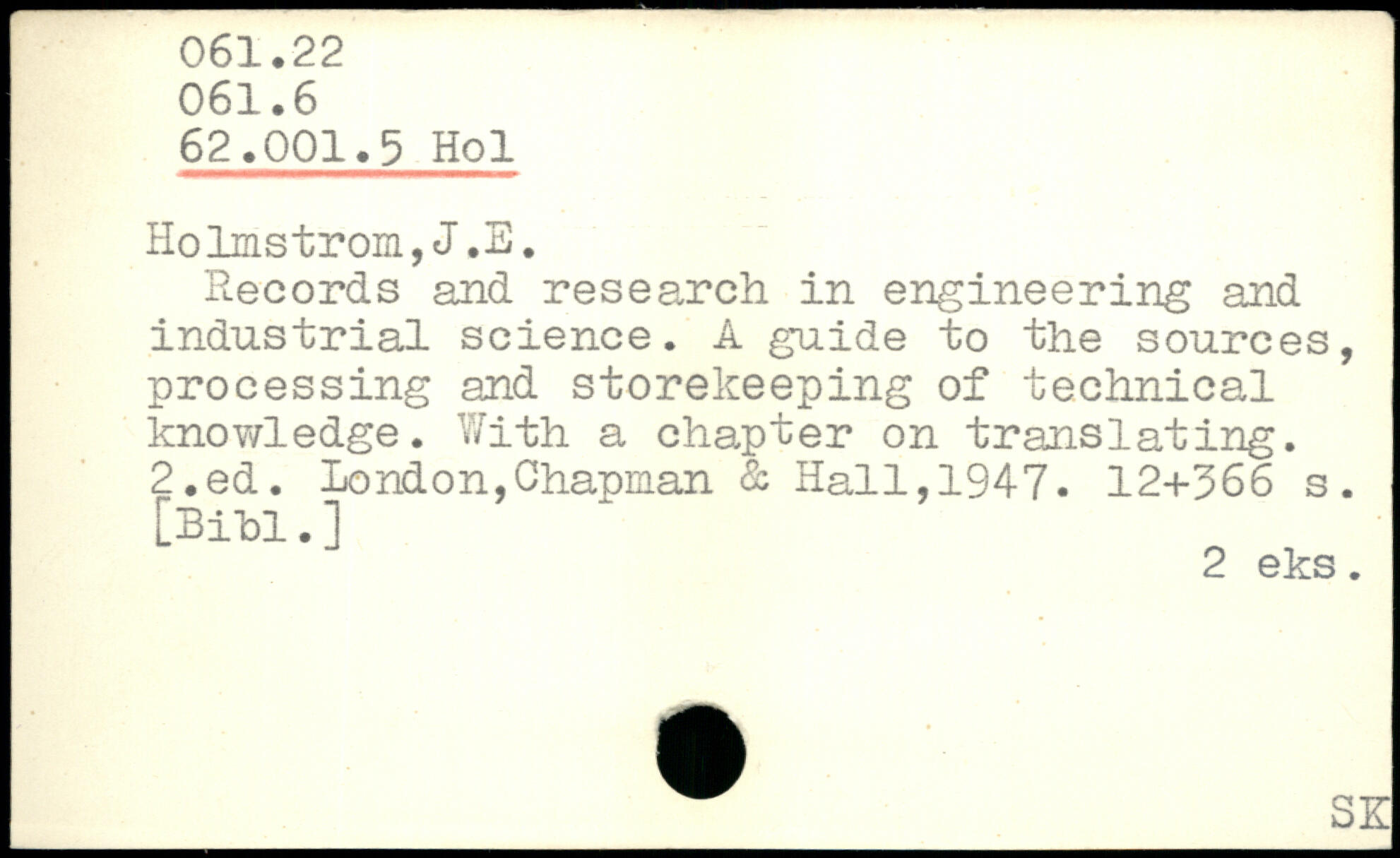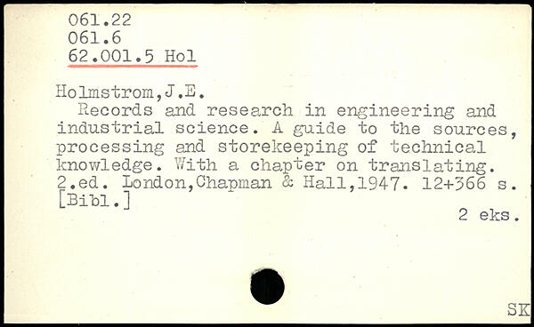 Records and research in engineering and industrial science. A guide to the sources, processing and storekeeping of technical knowledge. With a chapter on translating.