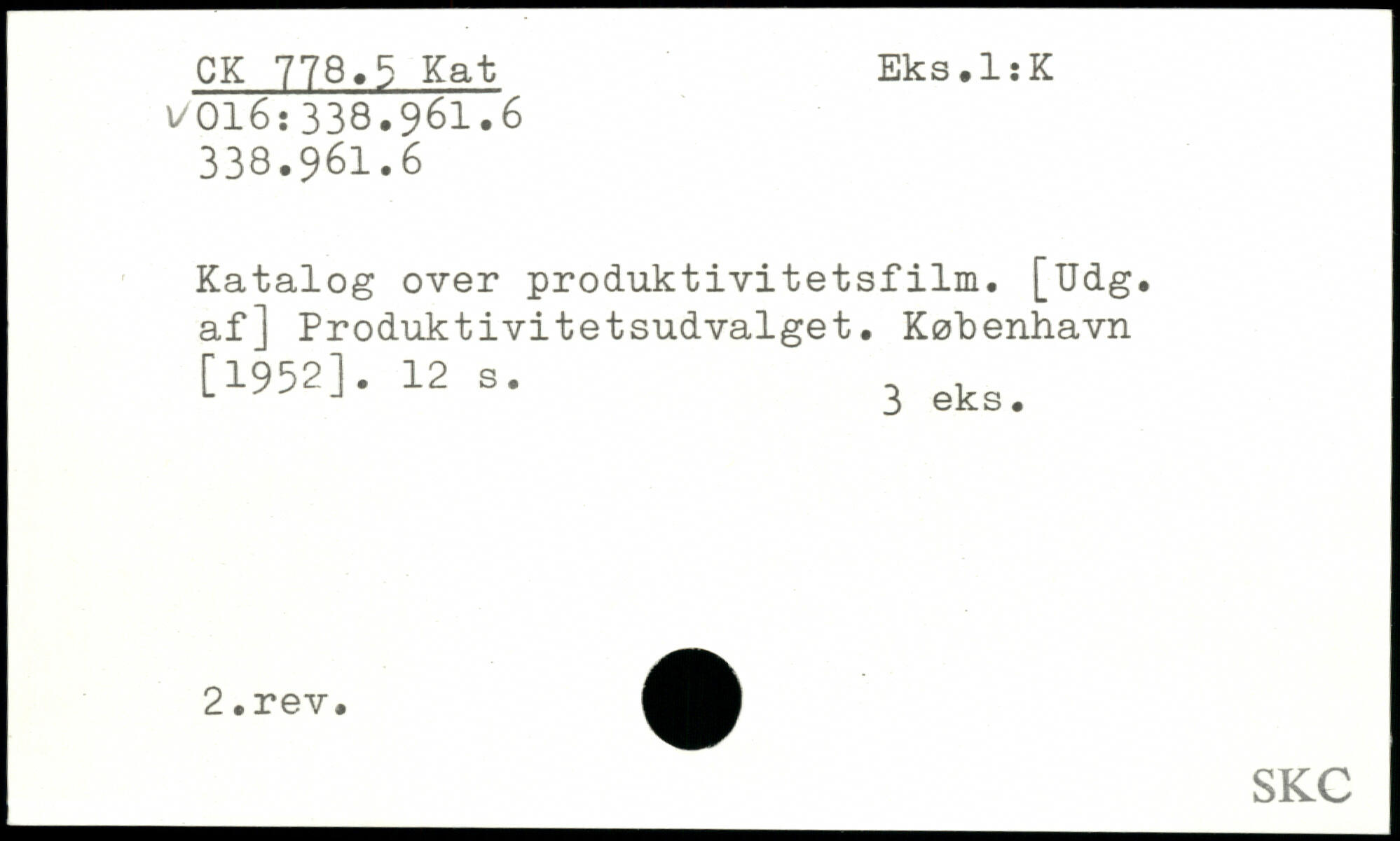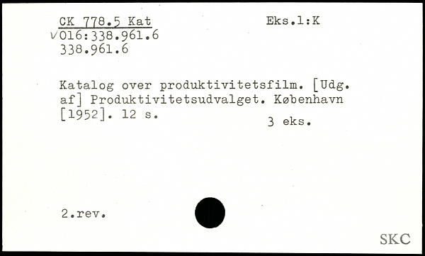 Katalog over produktivitetsfilm. [Udg. af] Produktivitetsudvalget.