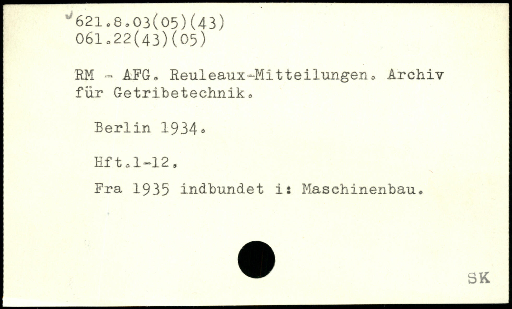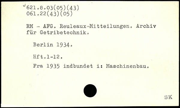 RM - AFG, Reuleaux-Mitteilungen, Archiv für Getribetechnik