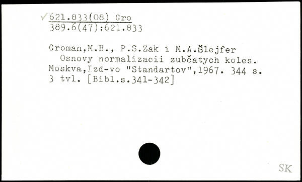 Groman,M.B., P.S.Zak i M.A.Slejfer Osnovy normalizacii zubcatych koles. Moskva,Izd-vo "Standartov",1967.