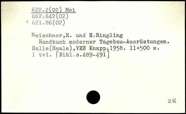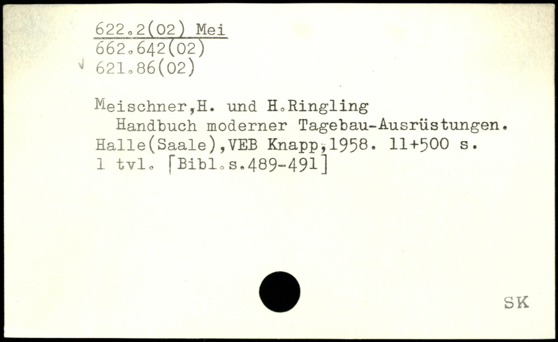 ^eischner,H. und HoRingling Handbuch moderner Tagebau-Ausrüstungen. Halle(Saale),VEB Knapp,1958.